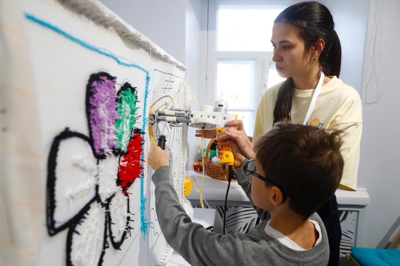 На двух этажах разместились 10 тематических площадок: музейный, китайский и шахматный клубы, художественная мастерская, цех деревообработки, фотолаборатория, школа тафтинга, занятия по робототехнике, рукоделию и китайской каллиграфии.
