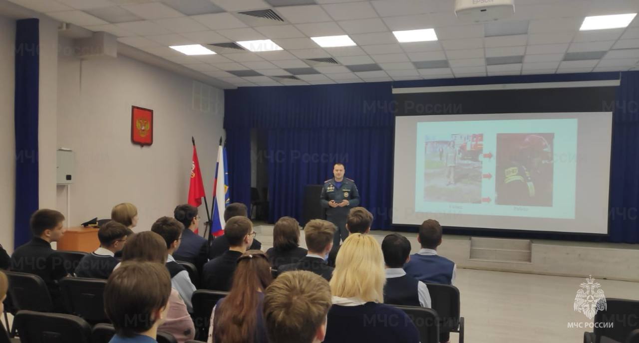 Об этом старшеклассникам гимназии № 5 в Сергиевом Посаде рассказал заместитель начальника 87-й пожарно-спасательной части Александр Пшанов.