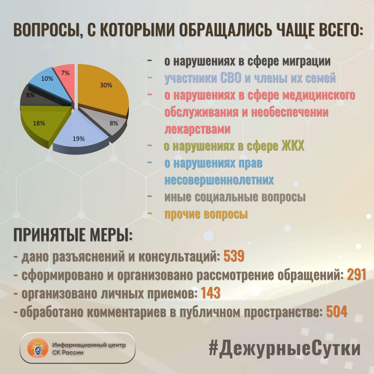 В Информационный центр СК России за прошедшие сутки всего обратилось граждан: 830