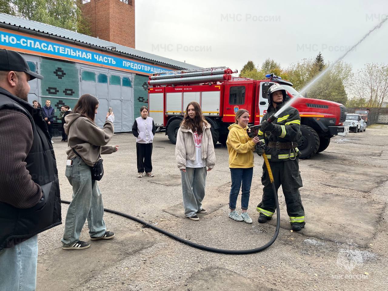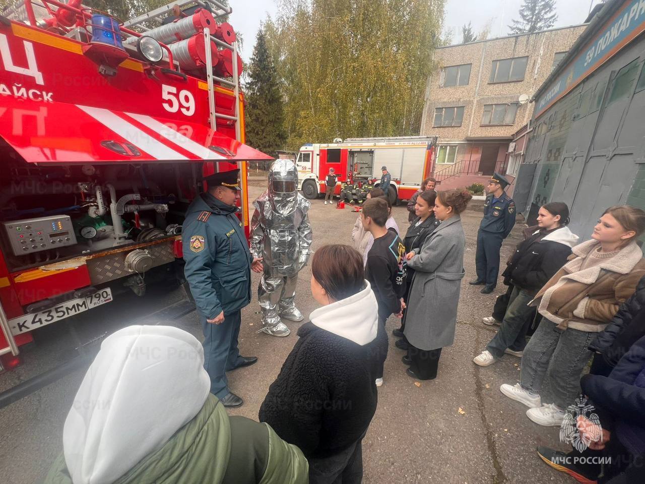 познакомились с боевой одеждой пожарного и уникальным теплоотражающим костюмом;