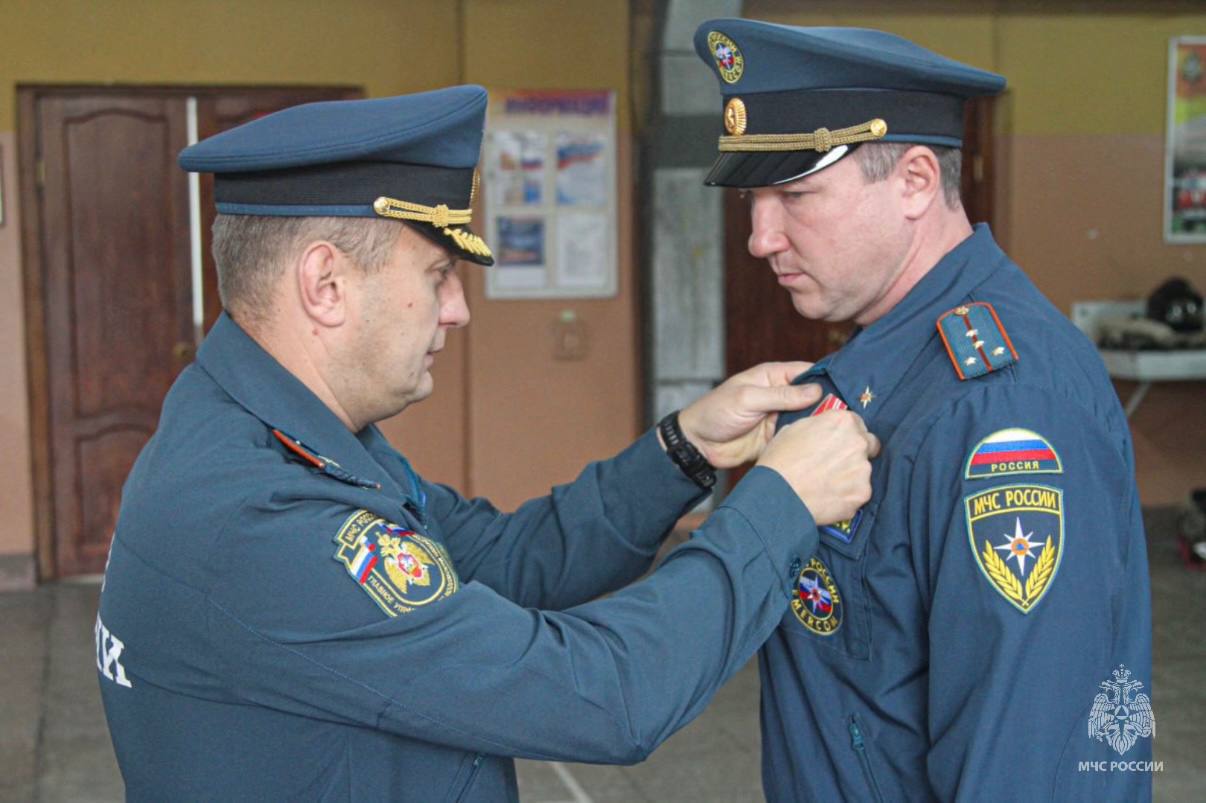 За самоотверженные действия медаль МЧС России «За спасение на пожаре» вручена начальнику караула Максиму Иваненко.