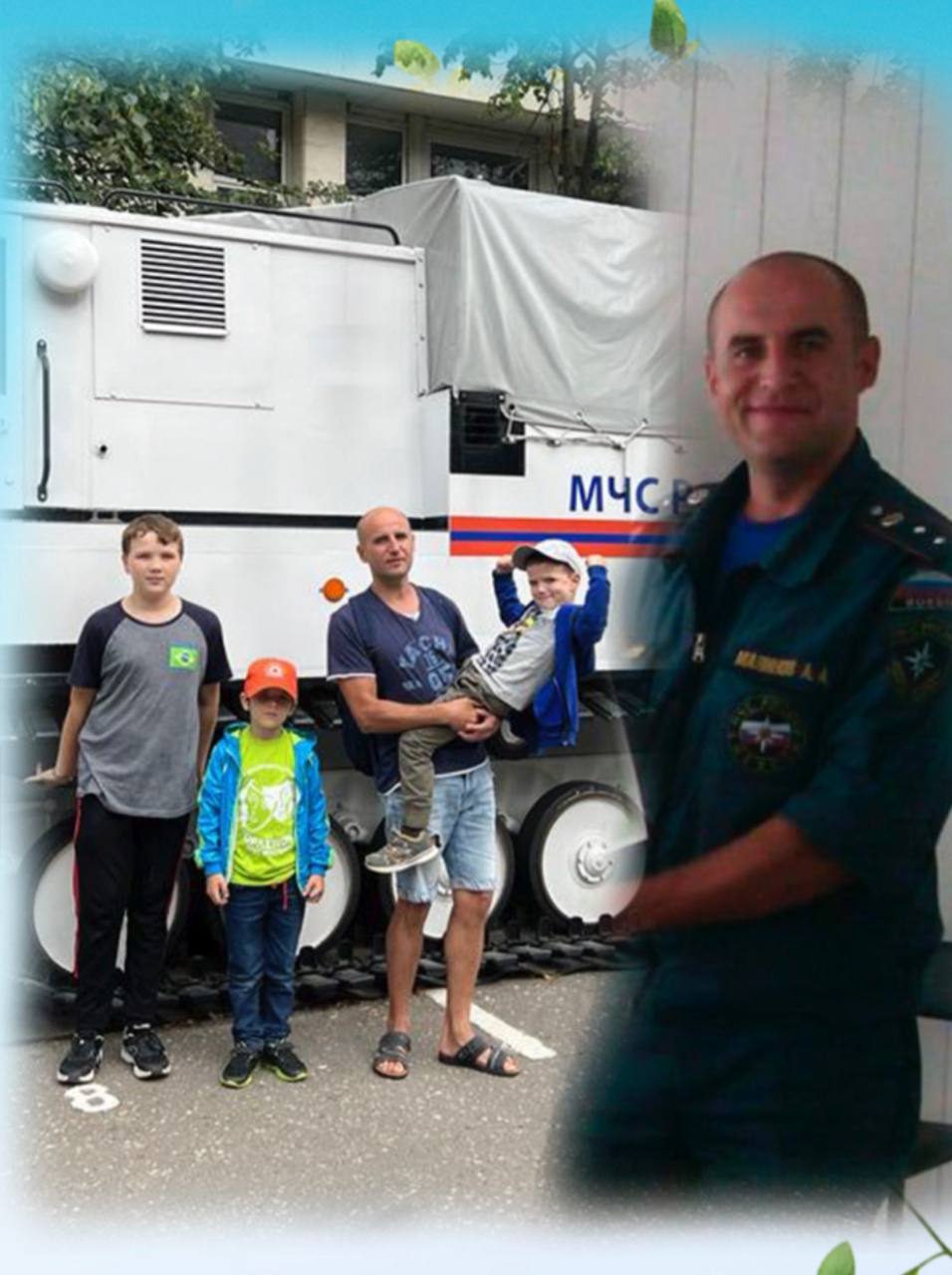 Малинов Алексей Александрович - прапорщик внутренней службы, командир отделения 36-й пожарно-спасательной части 8 ПСО ФПС ГПС ГУ МЧС России по Московской области. Он всегда на передовой, в самой гуще огня и чрезвычайных ситуаций. А по возвращении домой его встречают сыновья - Никита, Артём, Кирилл и самый младший, Лев.