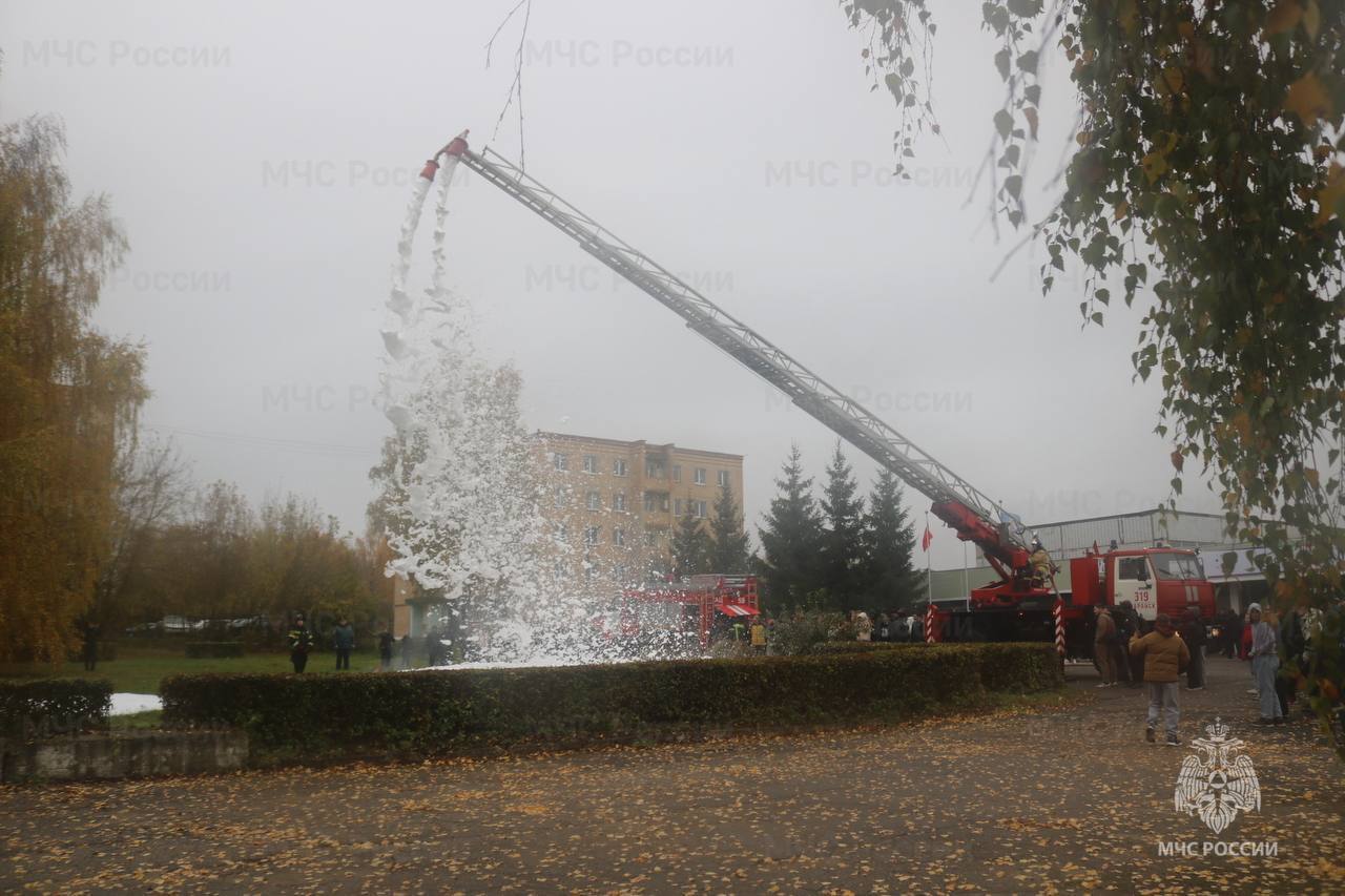 Спасатели наглядно показали, как правильно использовать противогаз и легкий защитный костюм Л-1. Продемонстрировали подачу воды из автоцистерны АЛ-30.