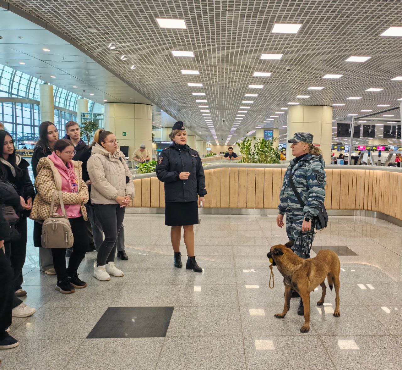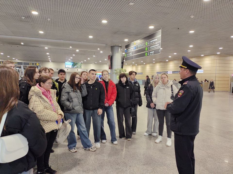 Заместитель начальника линейного управления МВД России в аэропорту Домодедово – начальник отделения (по работе с личным составом) ЛУ МВД России в аэропорту Домодедово майор полиции Ирина Щурова и руководители ряда подразделений провели для учащихся экскурсию по аэровокзальному комплексу, рассказав о специфике службы, об условиях поступления на службу в органы внутренних дел.
