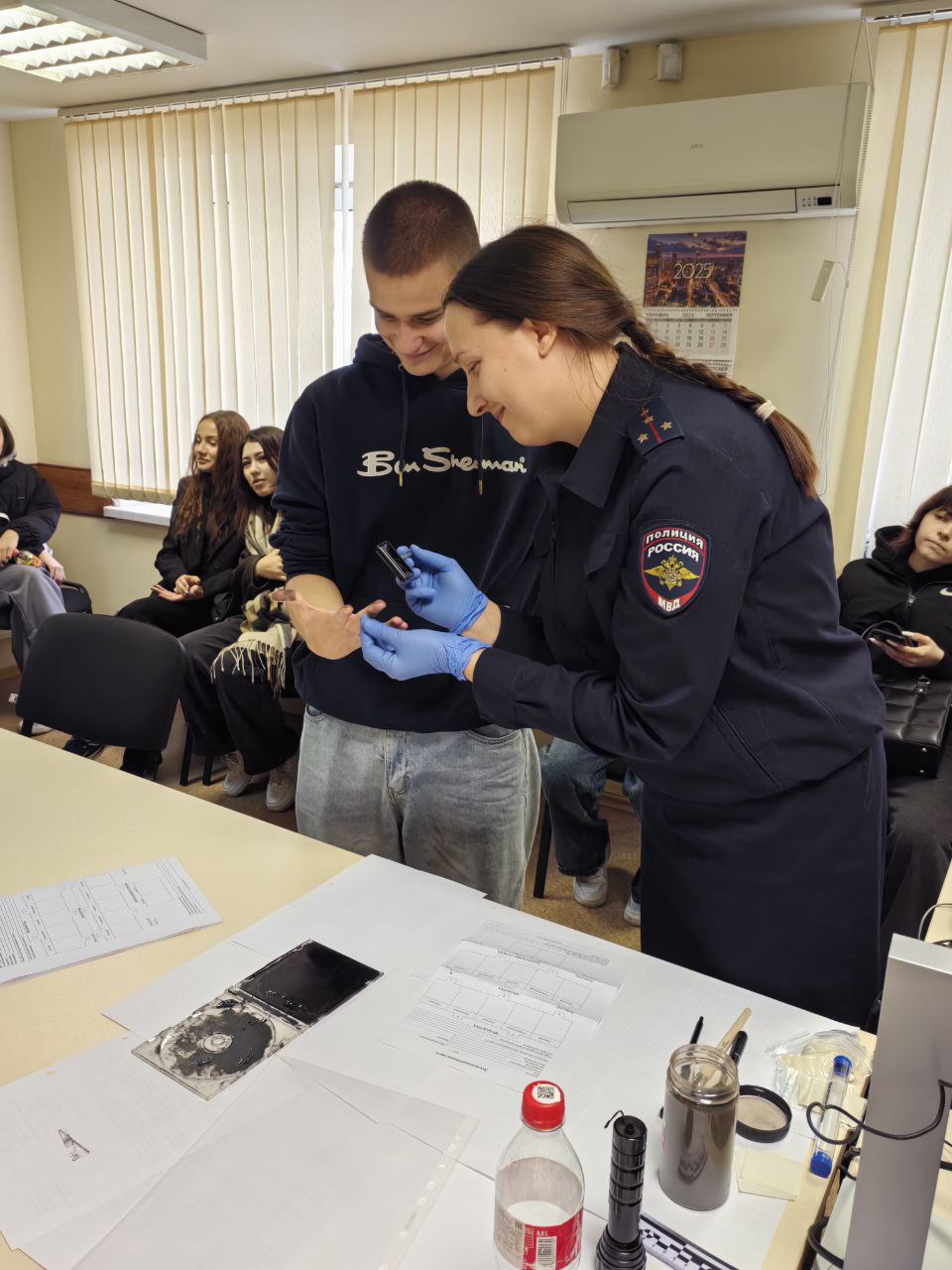 В ходе мероприятия гостям старший эксперт-криминалист ЭКО показал гостям, как работать с дактилоскопическим набором. Учащимися предложили попробовать себя в роли сотрудника экспертно-криминалистического подразделения, что произвело неизгладимое впечатление, ведь возможность познакомиться с техникой выполнения дактилоскопирования выпадает далеко не каждому.