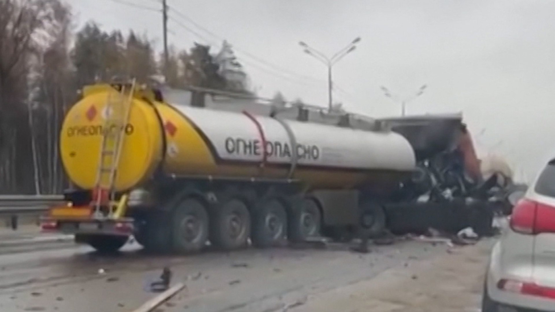 На трассе под Серпуховом водитель бензовоза столкнулся с тремя грузовыми и двумя легковыми автомобилями. У бензовоза от удара почти полностью смяло кабину. В результате ДТП три человека погибли, двое детей пострадали. Сейчас сотрудники Госавтоинспекции выясняют все обстоятельства и причины происшествия. https://smotrim.ru/video/3036025