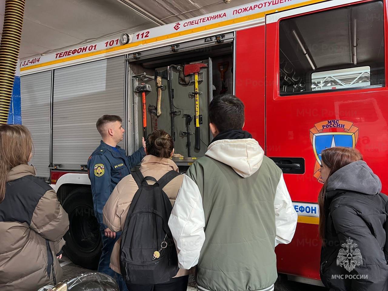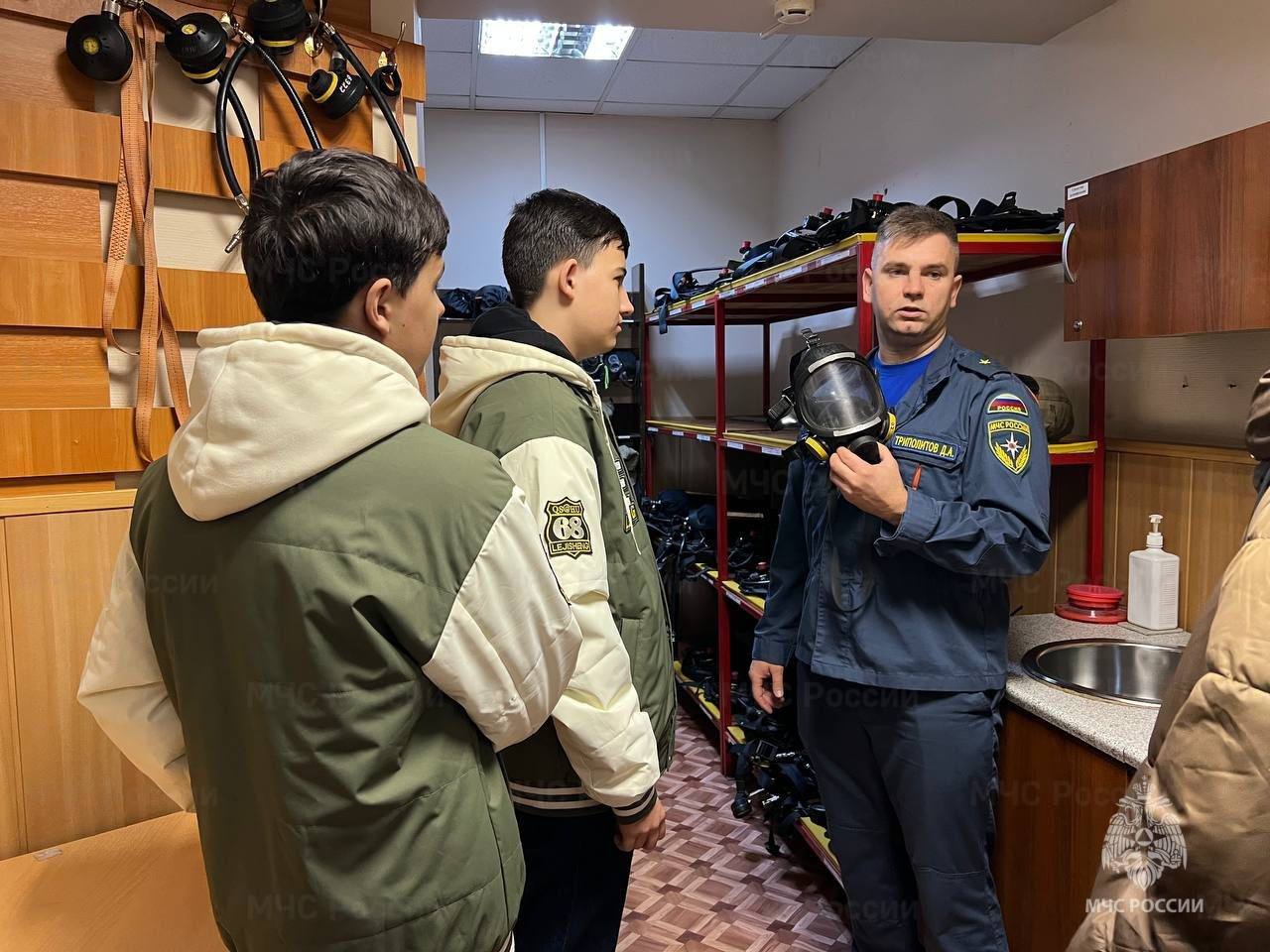Ребята смогли пройти весь путь бойца по тревоге: от караульного помещения и диспетчерской, где принимают вызовы, до самого сердца части - гаража с боевой техникой.