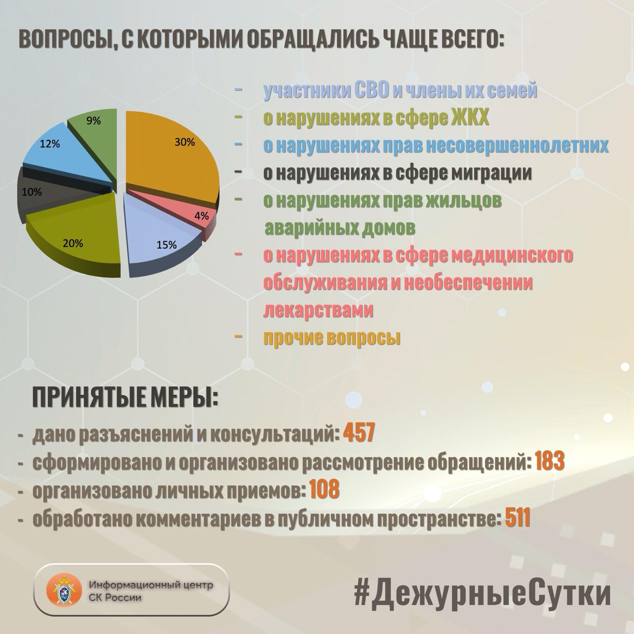 В Информационный центр СК России за прошедшие сутки всего обратилось граждан: 6 4 0
