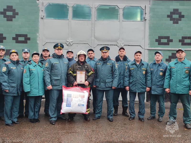 На торжественном построении начальник 14 пожарно-спасательного отряда Роман Костинов вручил виновнику торжества благодарственное письмо и от всей души поблагодарил за самоотверженный труд. Коллеги преподнесли памятный подарок, как символ уважения и крепкой боевой дружбы.