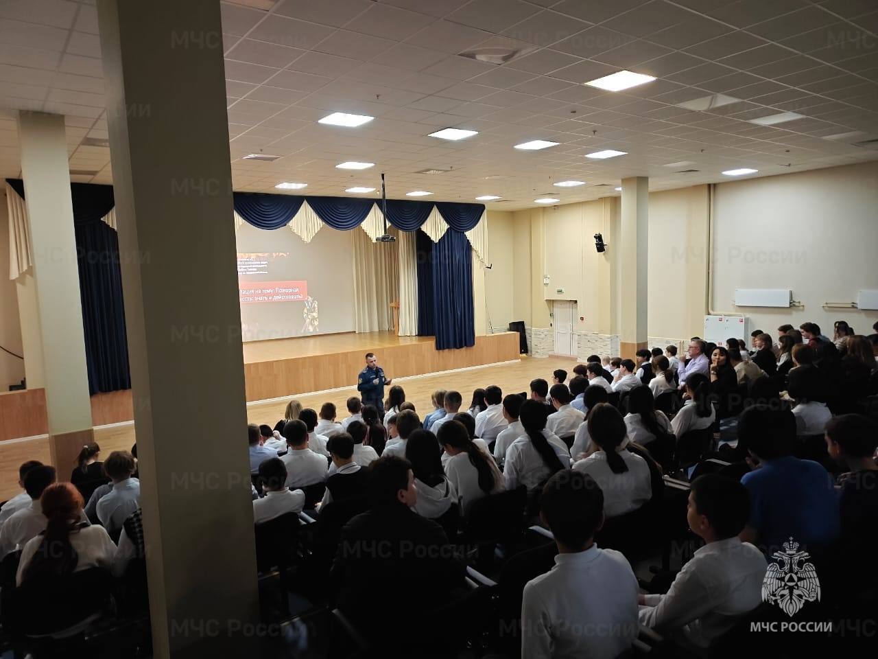 Заместитель начальника ОНД и ПР по г.о. Балашиха Алексей Якушин провел профориентационную беседу, где рассказал :