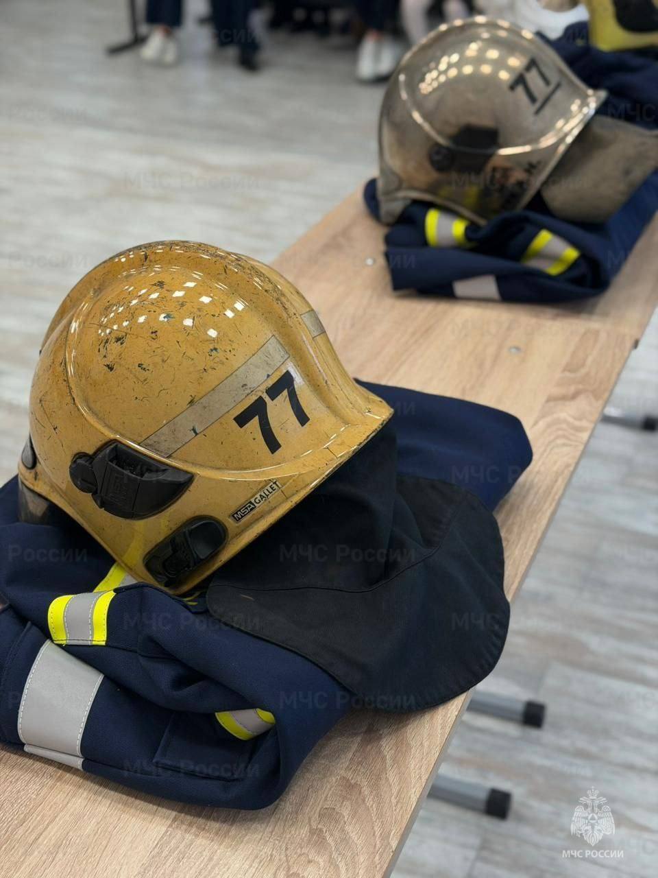 Примеряли боевую одежду пожарного.