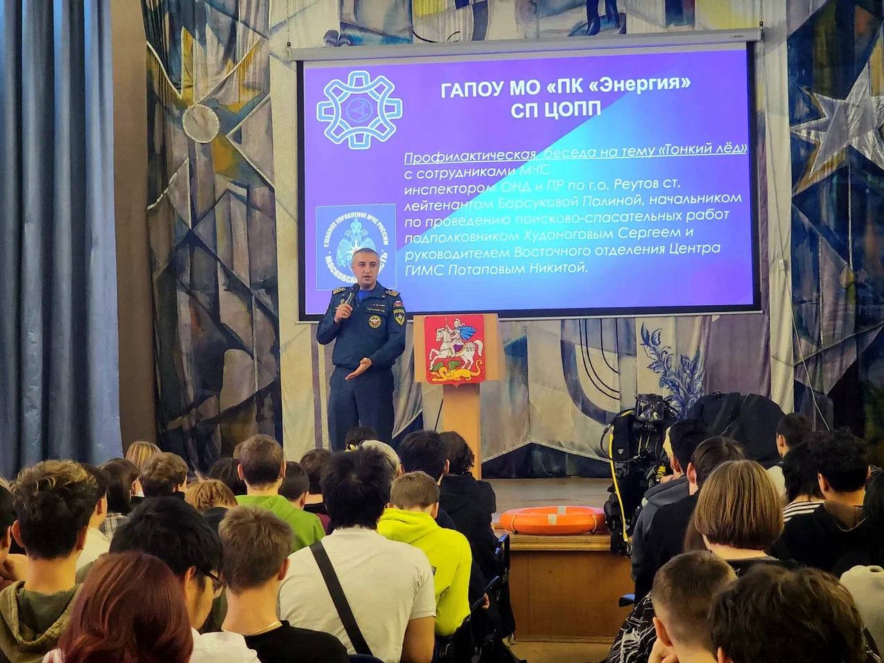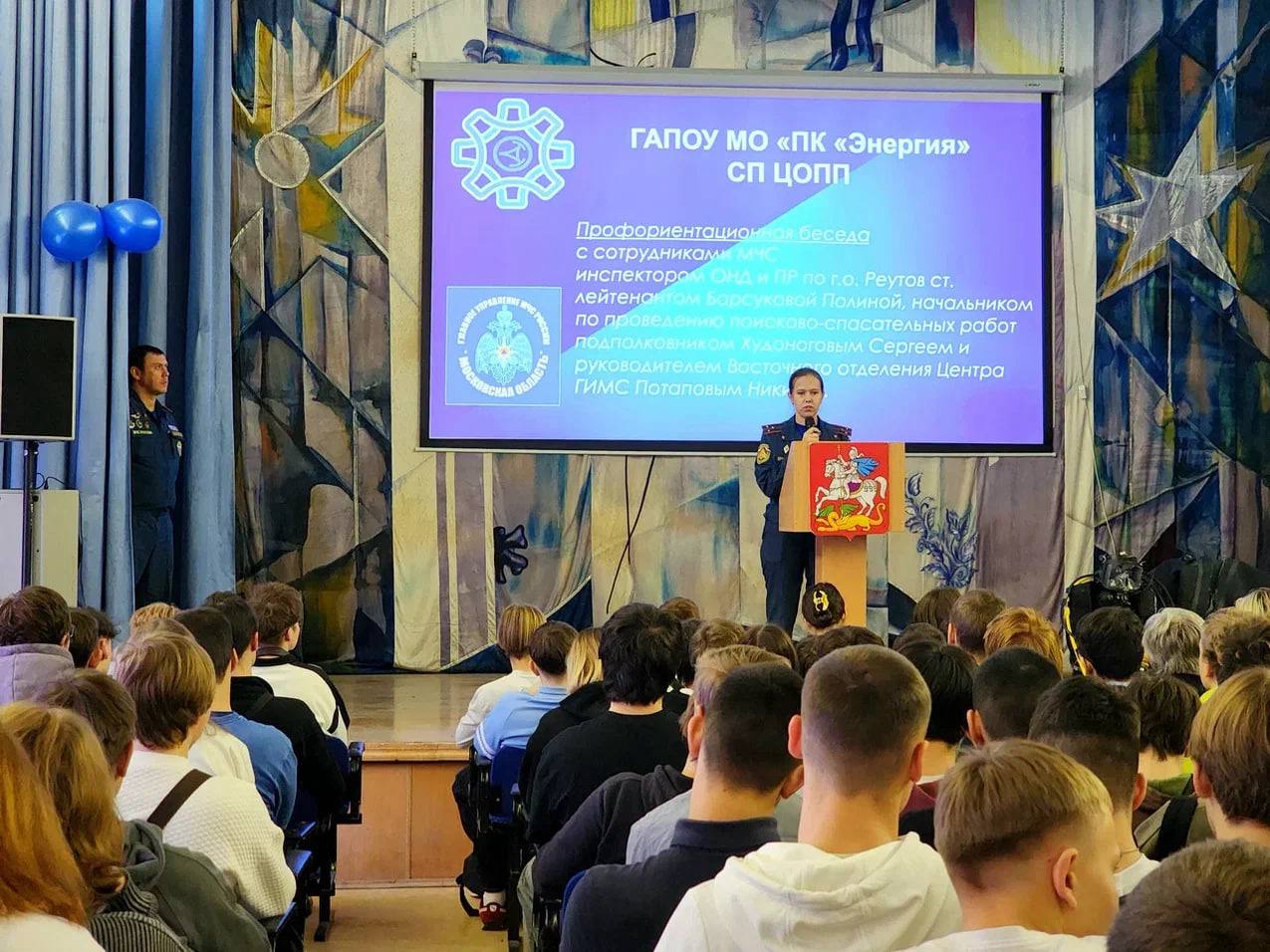 Сотрудники МЧС России - пожарные, инспекторы Госпожнадзора и ГИМС - провели комплексный урок безопасности для учащихся колледжа «Энергия» в Реутове.