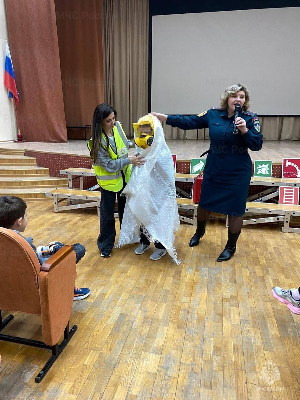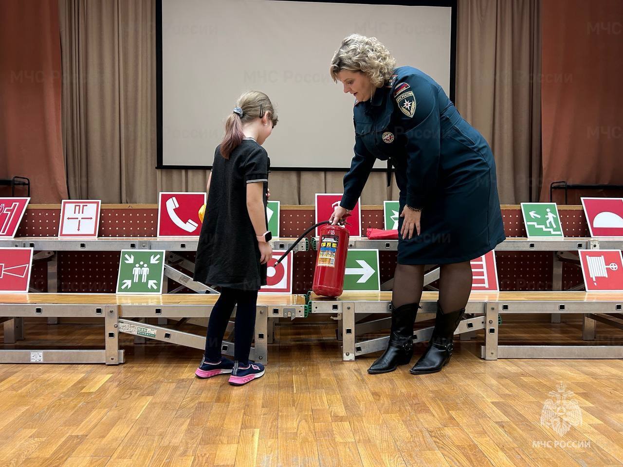 Для закрепления знаний школьникам показали специальный обучающий видеоролик «Правила поведения при пожаре в школе», созданный сотрудниками.