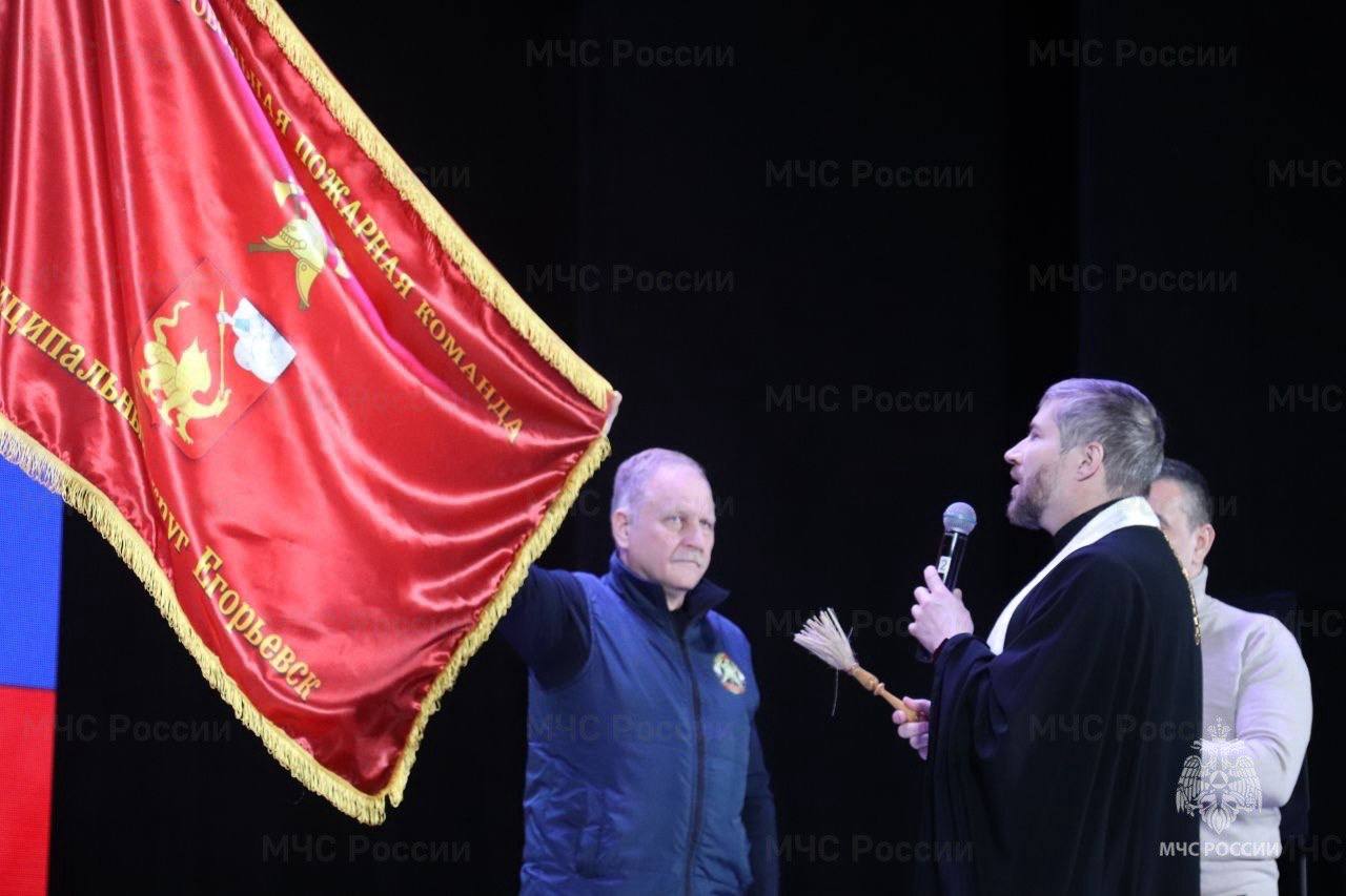 В рамках праздника состоялась церемония крепления полотнища знамени Добровольной пожарной команды муниципального округа Егорьевск, а также была почтена память героев Великой Отечественной войны в честь годовщины контрнаступления советских войск под Москвой.