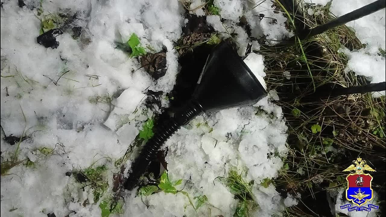 Следственно-оперативная группа, прибывшая по вызову, обнаружила устройство со следами постороннего вмешательства и признаками термического воздействия. С места происшествия изъяты канистра, воронка, две сгоревшие бутылки и следы обуви.