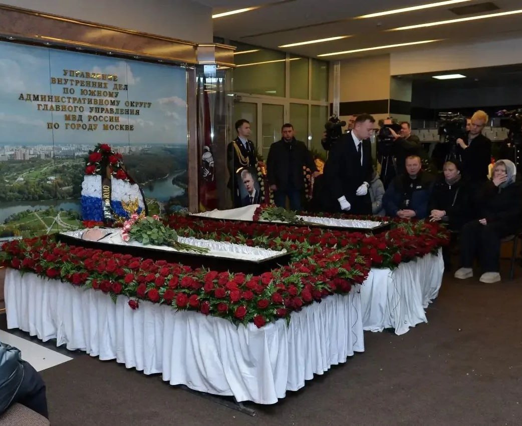 Сегодня на территории Управления внутренних дел по Южному административному округу г. Москвы проходит траурная церемония прощания с инспекторами отдельного батальона ДПС ГИБДД УВД по Южному округу ГУ МВД России по г. Москве Ильей Климановым и Максимом Горбуновым, погибшими при исполнении служебного долга 24 декабря 2025 года.