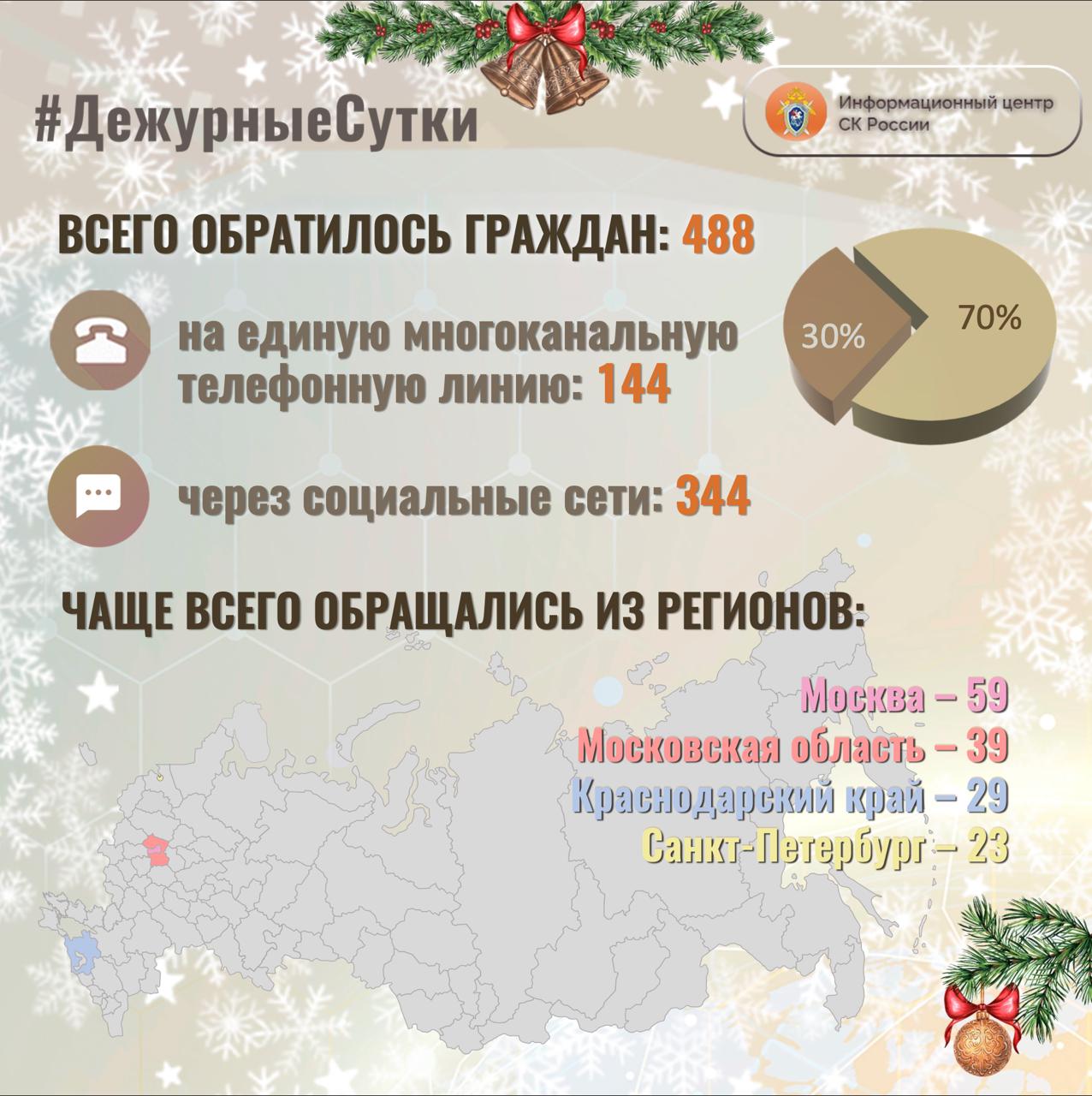 В Информационный центр СК России за прошедшие сутки всего обратилось граждан: 4 8 8