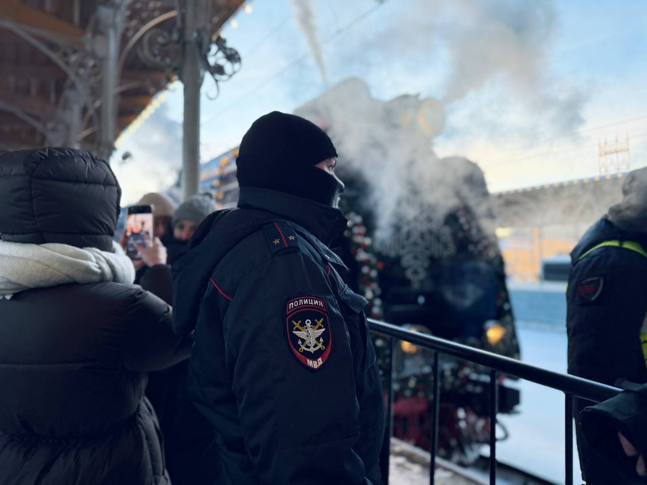Петербургские транспортные полицейские обеспечили правопорядок во время стоянки передвижной резиденции Деда Мороза