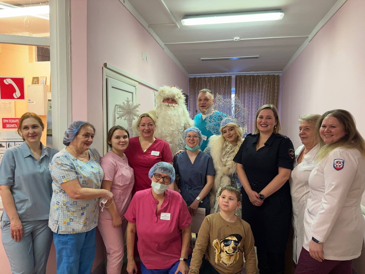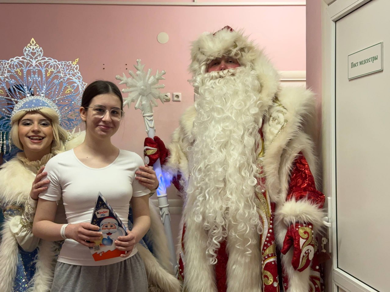Сотрудница полиции, Дед Мороз и Снегурочка поздравили пациентов детской больницы. Они поздравили ребят с Новым годом, пожелали им скорейшего выздоровления, крепкого здоровья и хорошего настроения и вручили сладкие подарки.