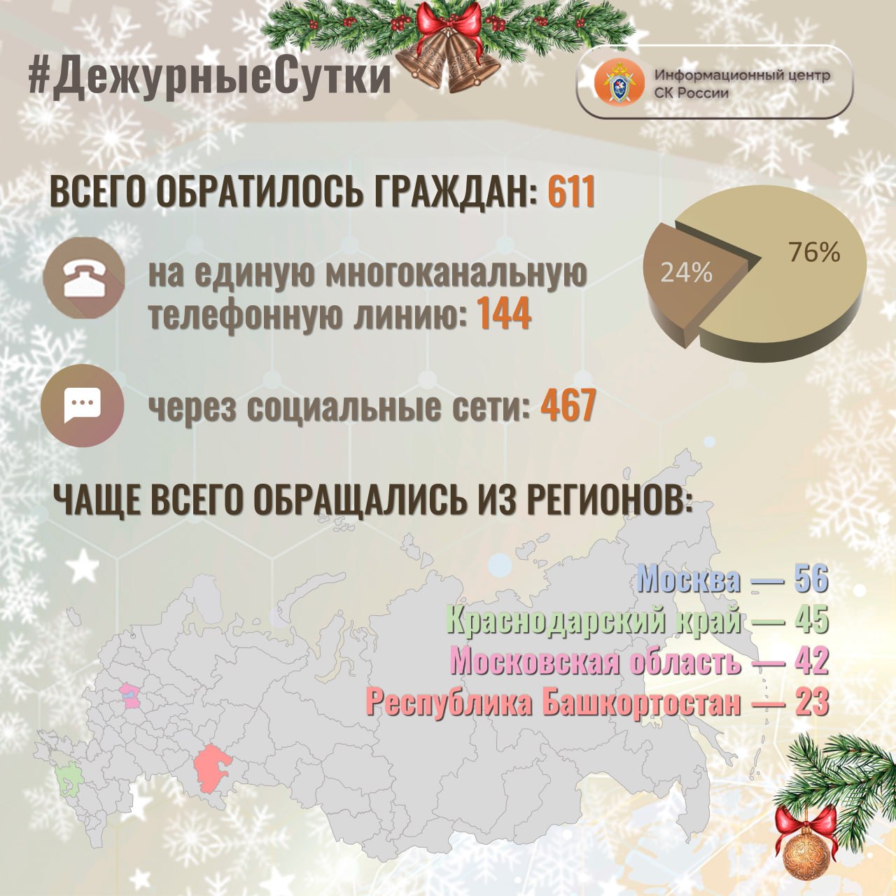 В Информационный центр СК России за прошедшие сутки всего обратилось граждан: 6 1 1
