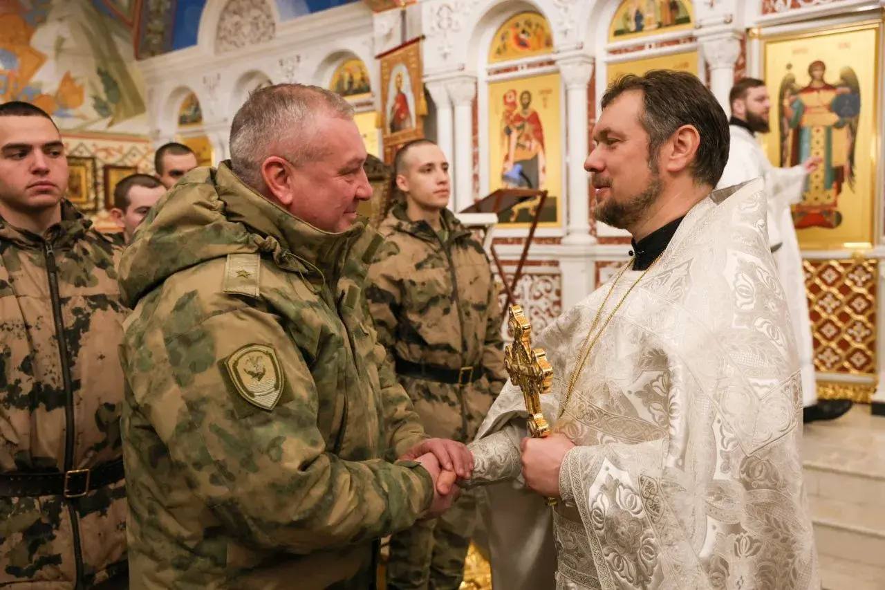 В литургии, посвящённой христианскому празднику, приняли участие военнослужащие ведомства со своими семьями, а также верующие местные жители. Службу возглавил настоятель Князь-Владимирского храма протоиерей Максим Беликов.