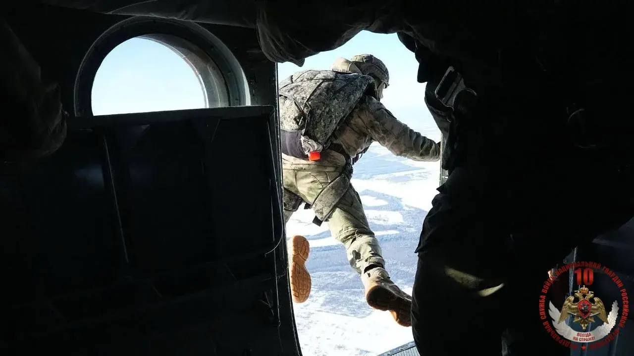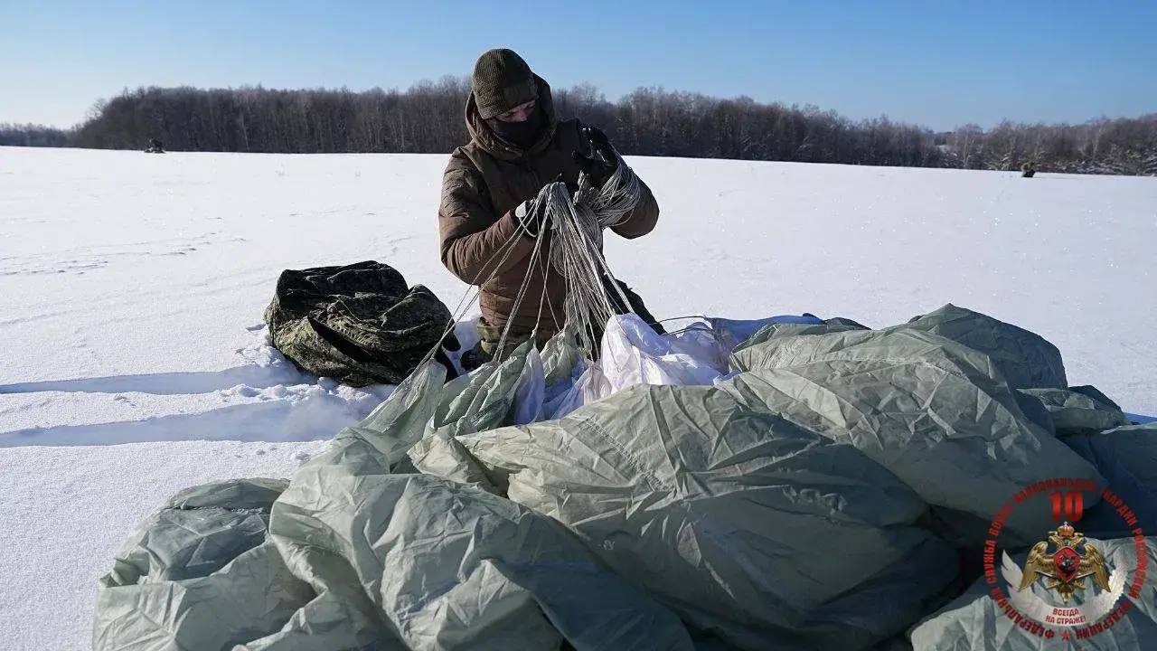 Спецназ Росгвардии отработал десантирование с парашютом в условиях низких температур