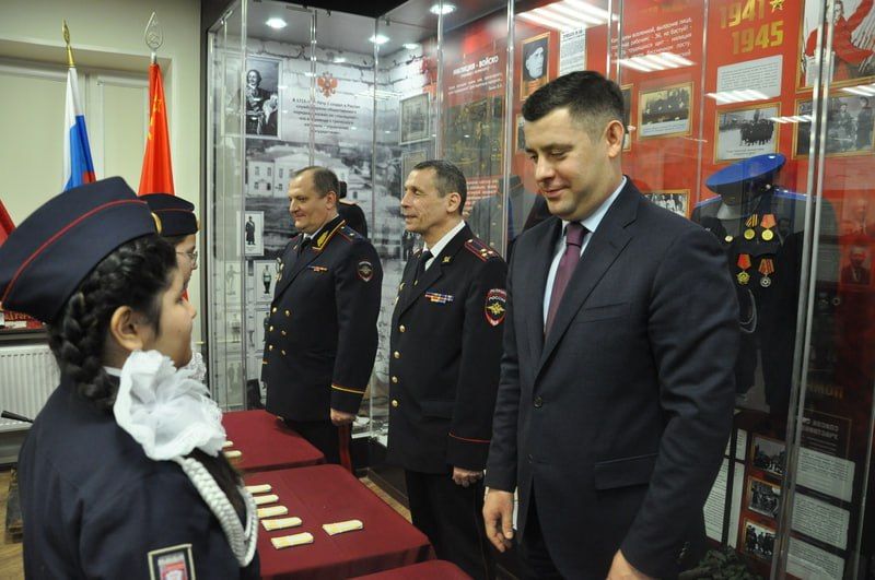 В завершение мероприятия Андрей Зеленов и Александр Редькин вручили школьникам погоны кадетов и памятные подарки, пожелав светлого будущего.