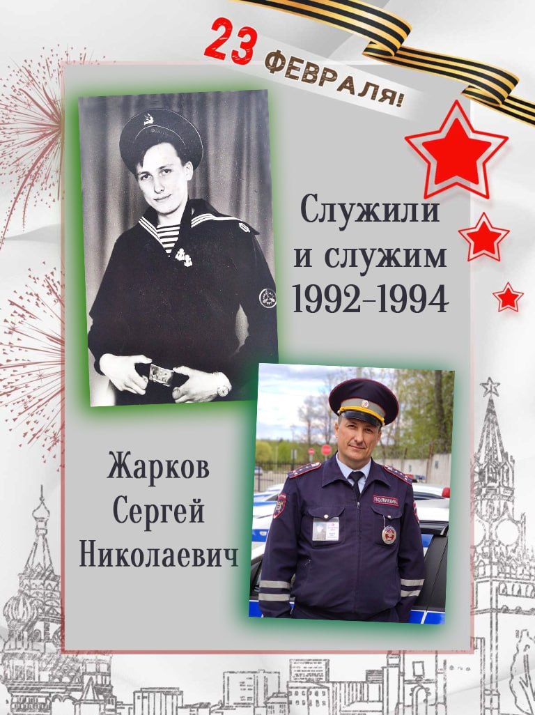 Старший инспектор ДПС отдела Госавтоинспекции ОМВД капитан полиции Сергей Жарков – моряк, он гордится тем, что находился в рядах Краснознаменной Каспийской флотилии. Его служба проходила с 1992 по 1994 годы на военном корабле, побывал в Баку, Махачкале, Астрахани. И 30 лет после этого отдал службе в органах внутренних дел.