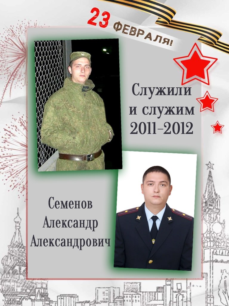 Александр Семенов проходил службу с 2011 по 2012 год в Федеральной службе охраны России в воинской части, которая находилась в Солнечногорском районе Подмосковья. Должность – старший водитель-инструктор. Сегодня он – старший оперуполномоченный уголовного розыска Дороховского отделения полиции ОМВД, майор полиции, находится на передовой линии борьбы с преступностью.