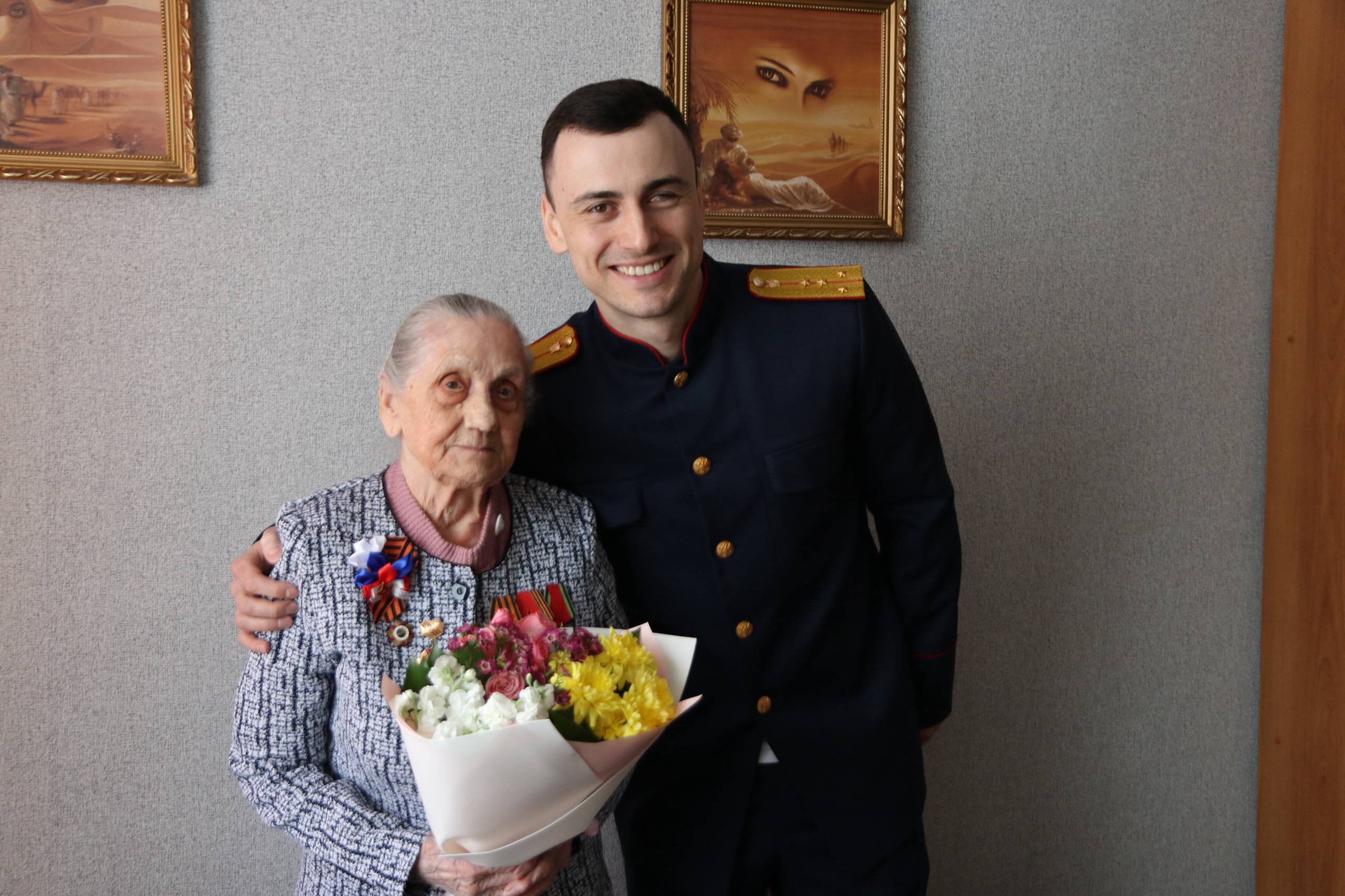 Офицеры ведомства поздравили ветеранов с наступающим праздником, пожелали крепкого здоровья, тепла и заботы и выразили искренние слова признательности Нине Ильиничне, Галине Александровне и Зинаиде Филипповне за их вклад в Победу, за каждую минуту нашей мирной жизни!