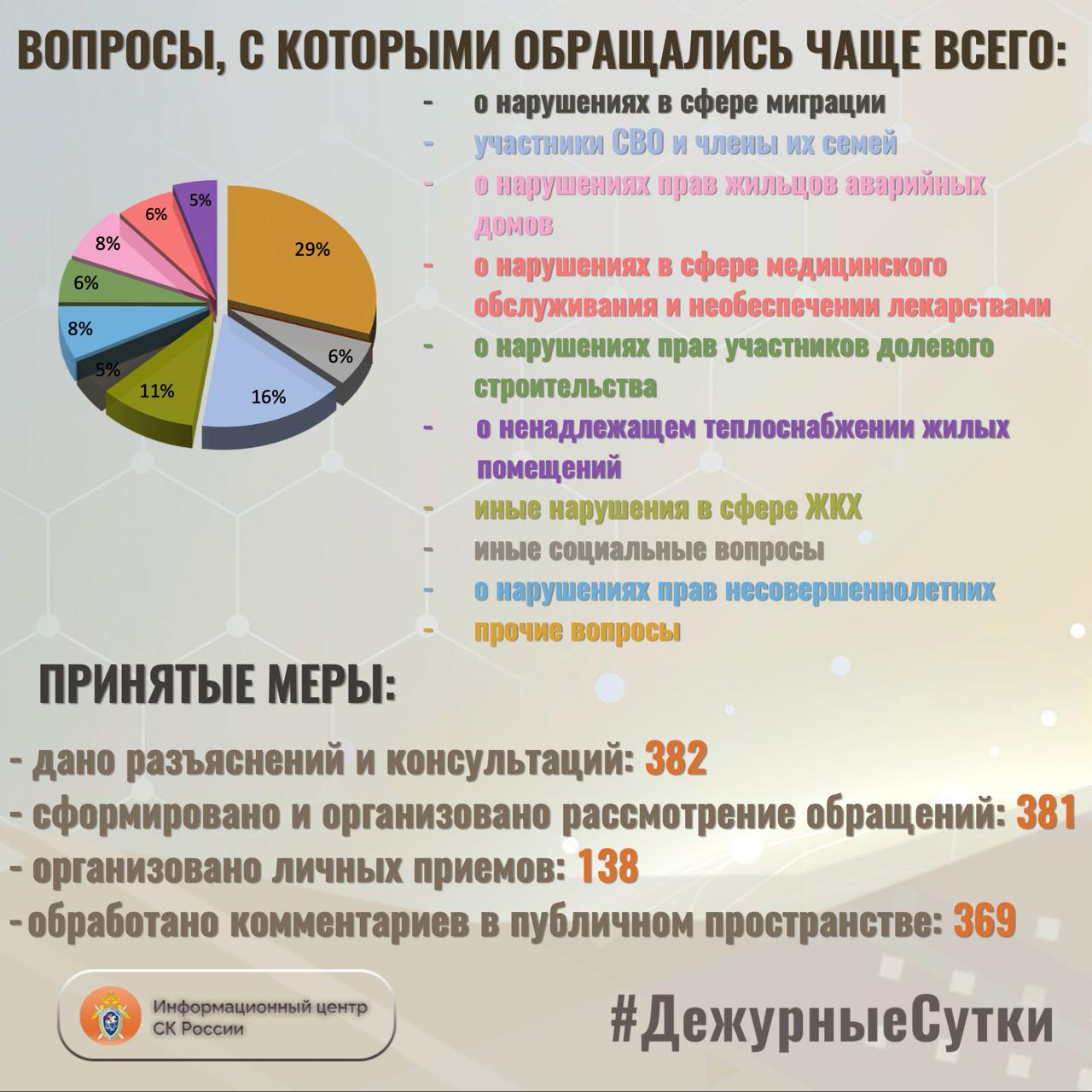 В Информационный центр СК России за прошедшие сутки всего обратилось граждан: 7 6 3