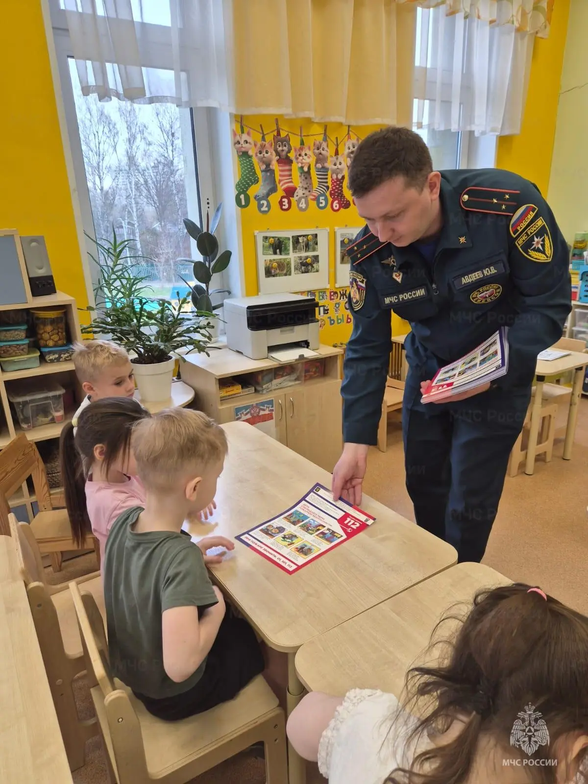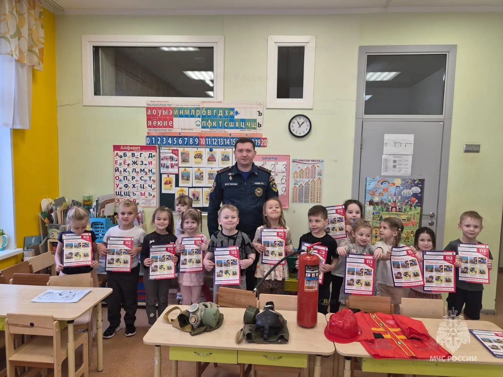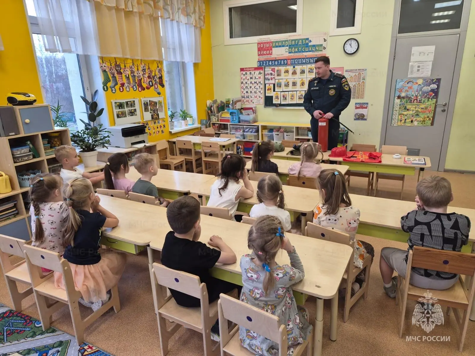 Инспекторы государственного пожарного надзора рассказали малышам об опасностях, которые могут произойти в результате неосторожного обращения с огнем, а также о том, как правильно себя вести в случае возникновения пожара.
