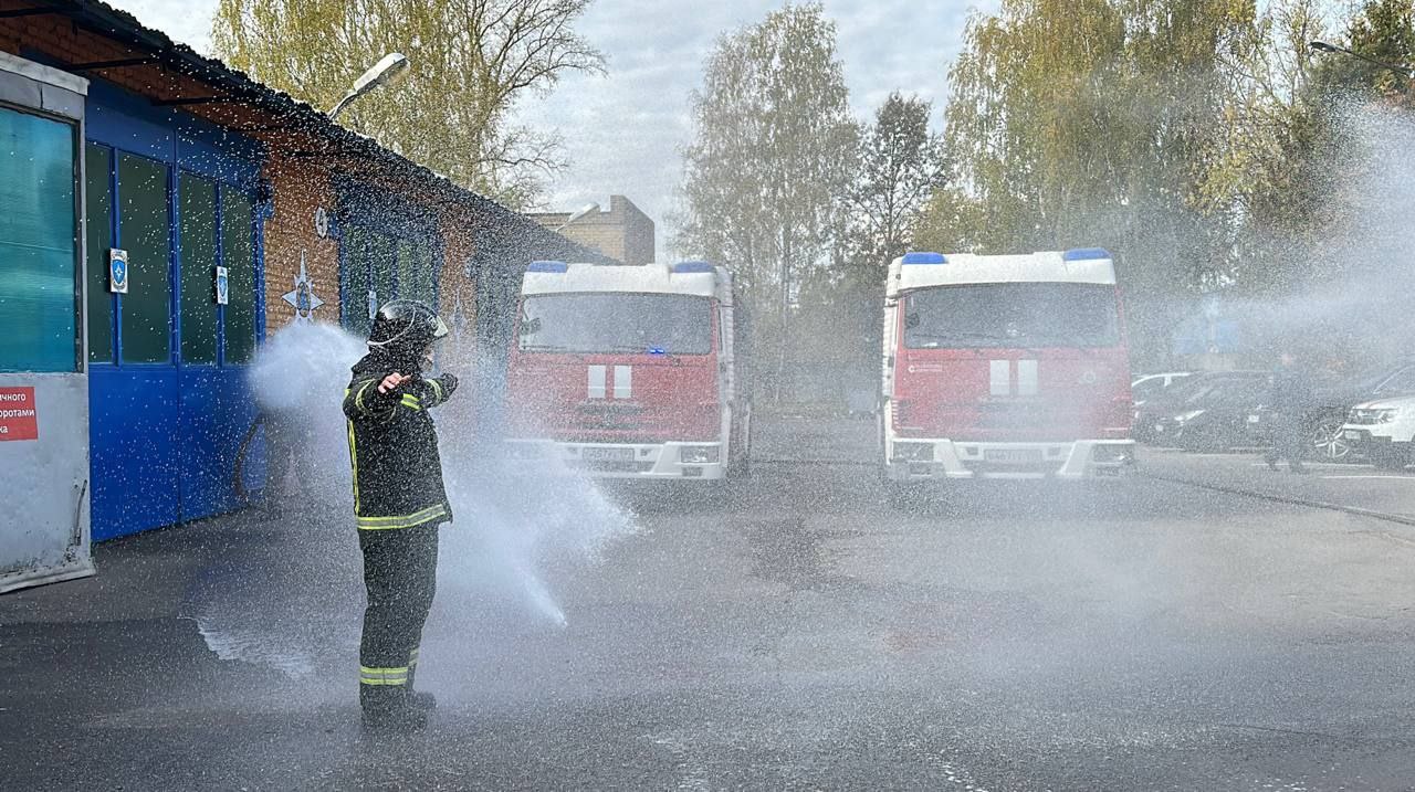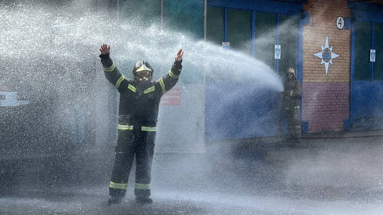 В знак уважения и признательности за долгие годы службы, с Игоря Юрьевича традиционно смыли водой из пожарных стволов копоть и дым, накопившиеся за годы службы.