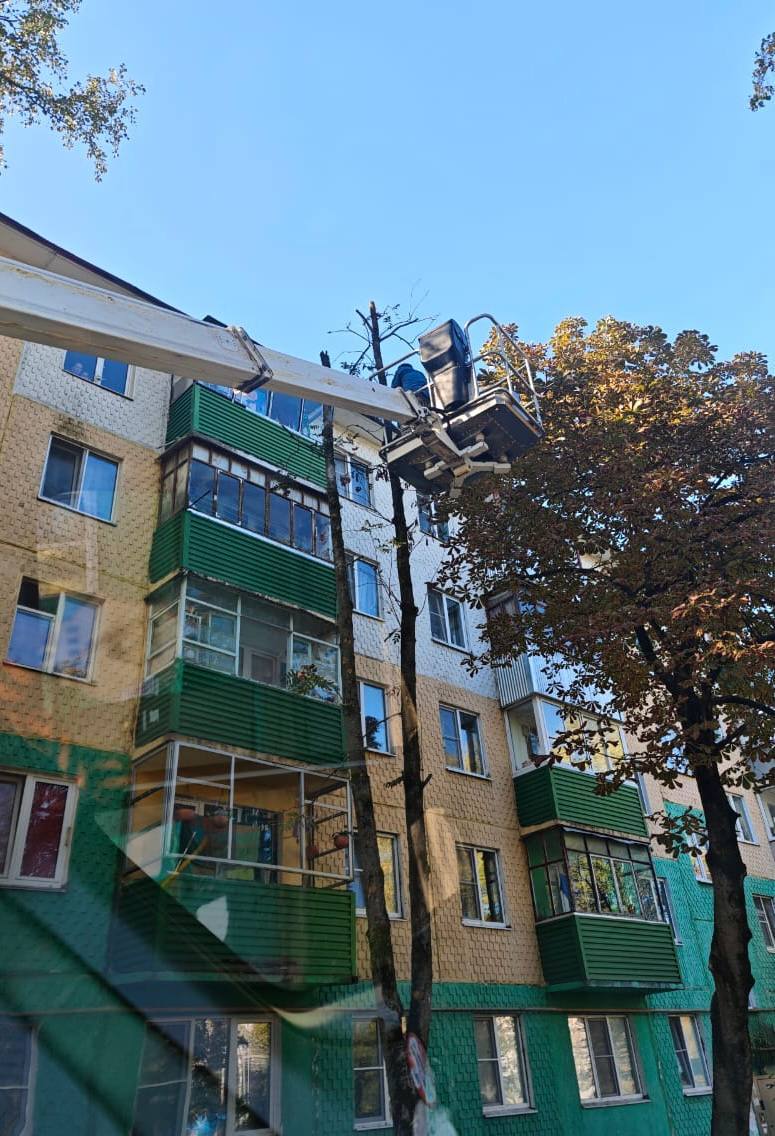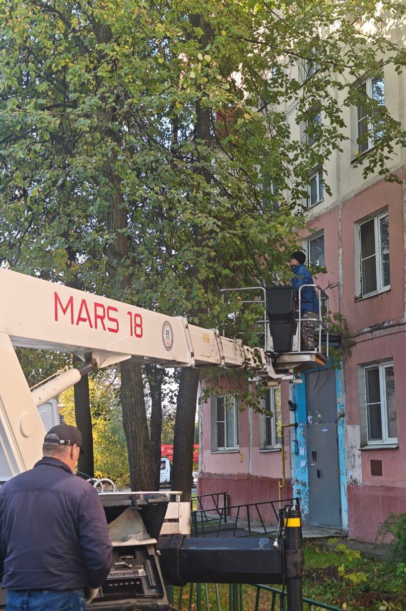 Для высотных работ мы используем современную спецтехнику. Это гарантирует не только высокое качество выполнения задачи, но и полную безопасность как для работников, так и для жителей