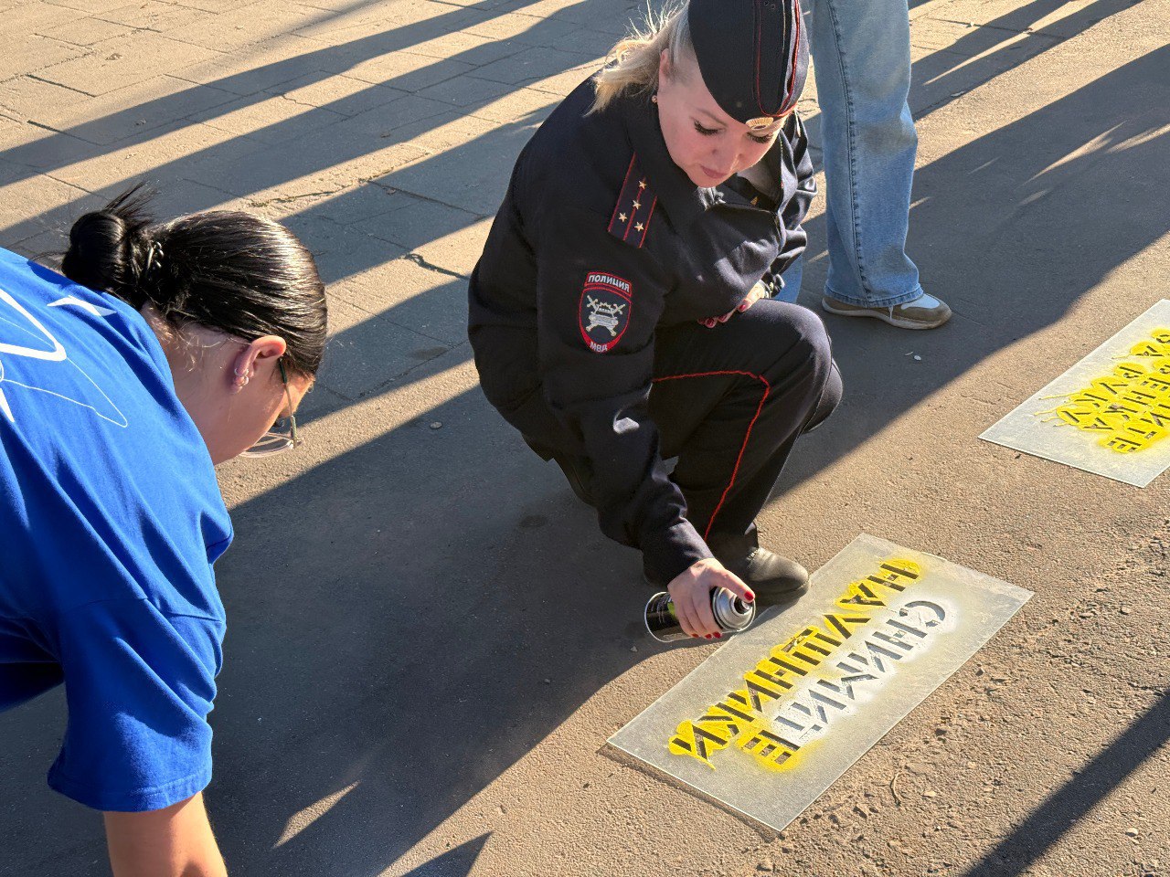 Акцию провели сотрудники Госавтоинспекции округа совместно со студентами профессионально-педагогического колледжа ГГТУ. Надписи нанесены с помощью краски и трафаретов прямо на дорожное покрытие в местах повышенного пешеходного трафика.