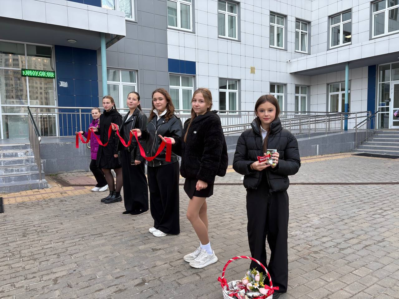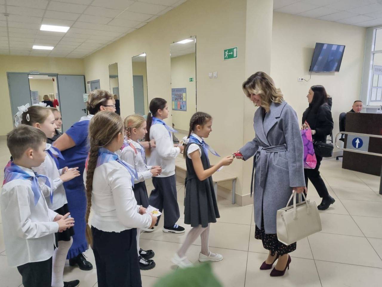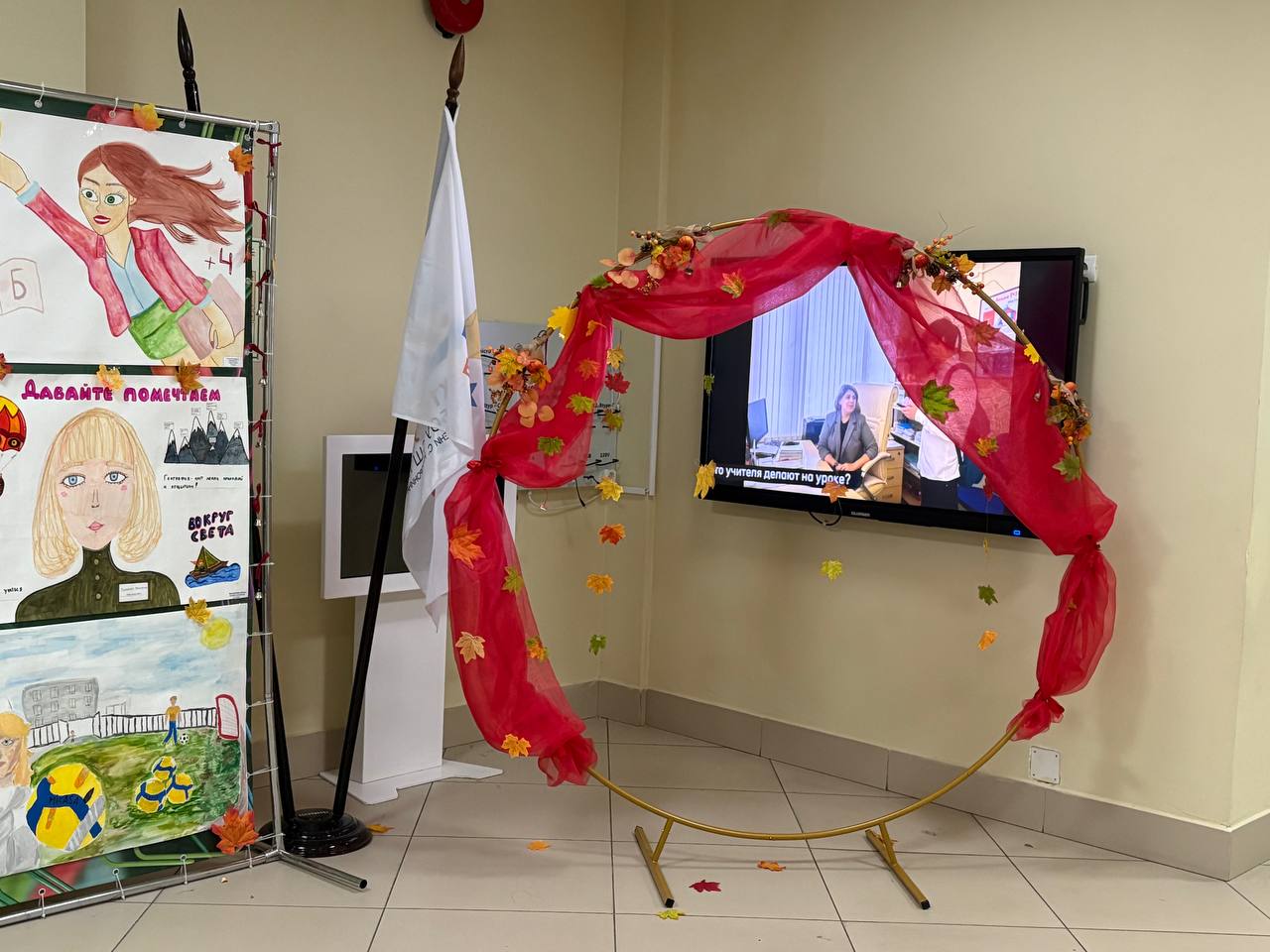 в школе педагогов встречали активисты ДР «Созвездие», «Движение Первых», «Орлята России», ЮИД