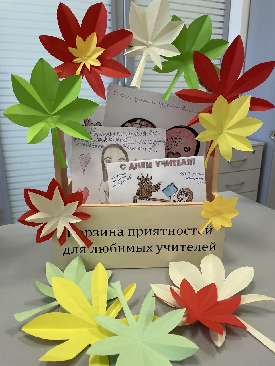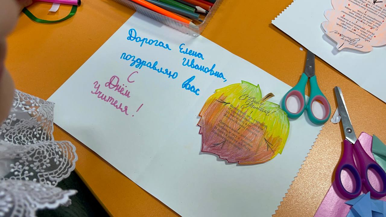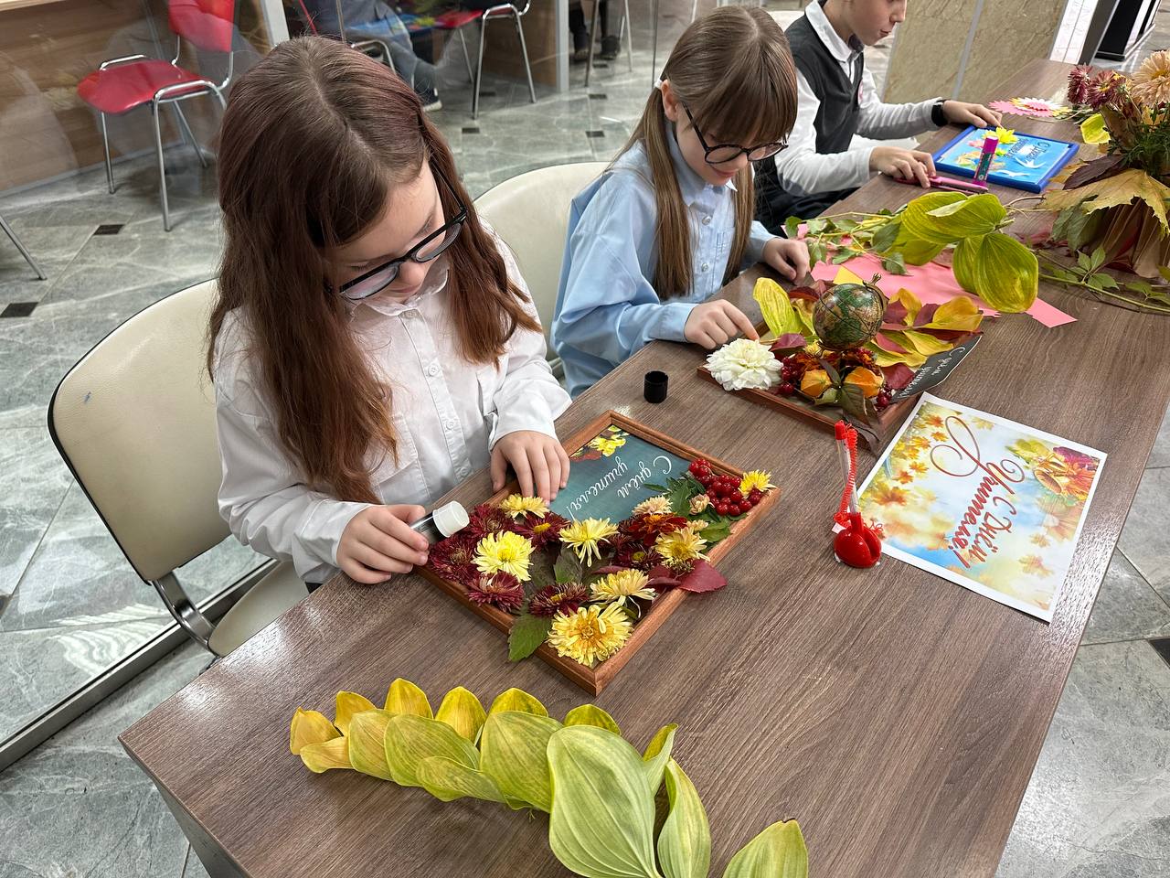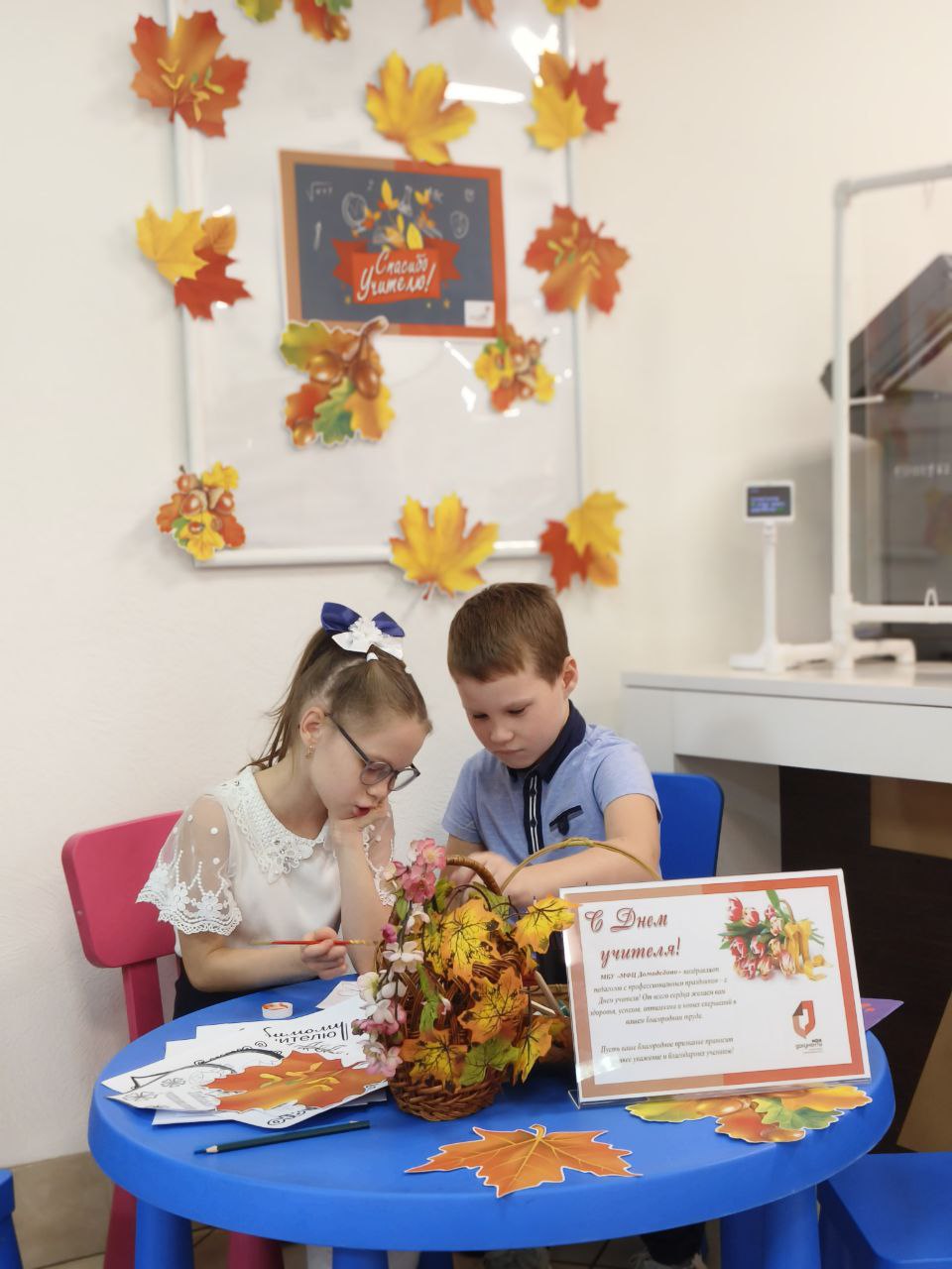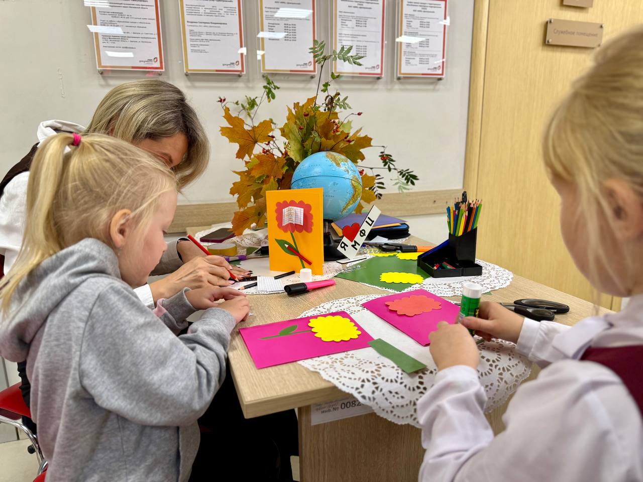 Дети нарисовали для своих учителей открытки, сделали аппликации из цветного картона, украсили композиции осенней листвой. Сотрудники МФЦ помогали участникам мастер-классов сделать подарок педагогам