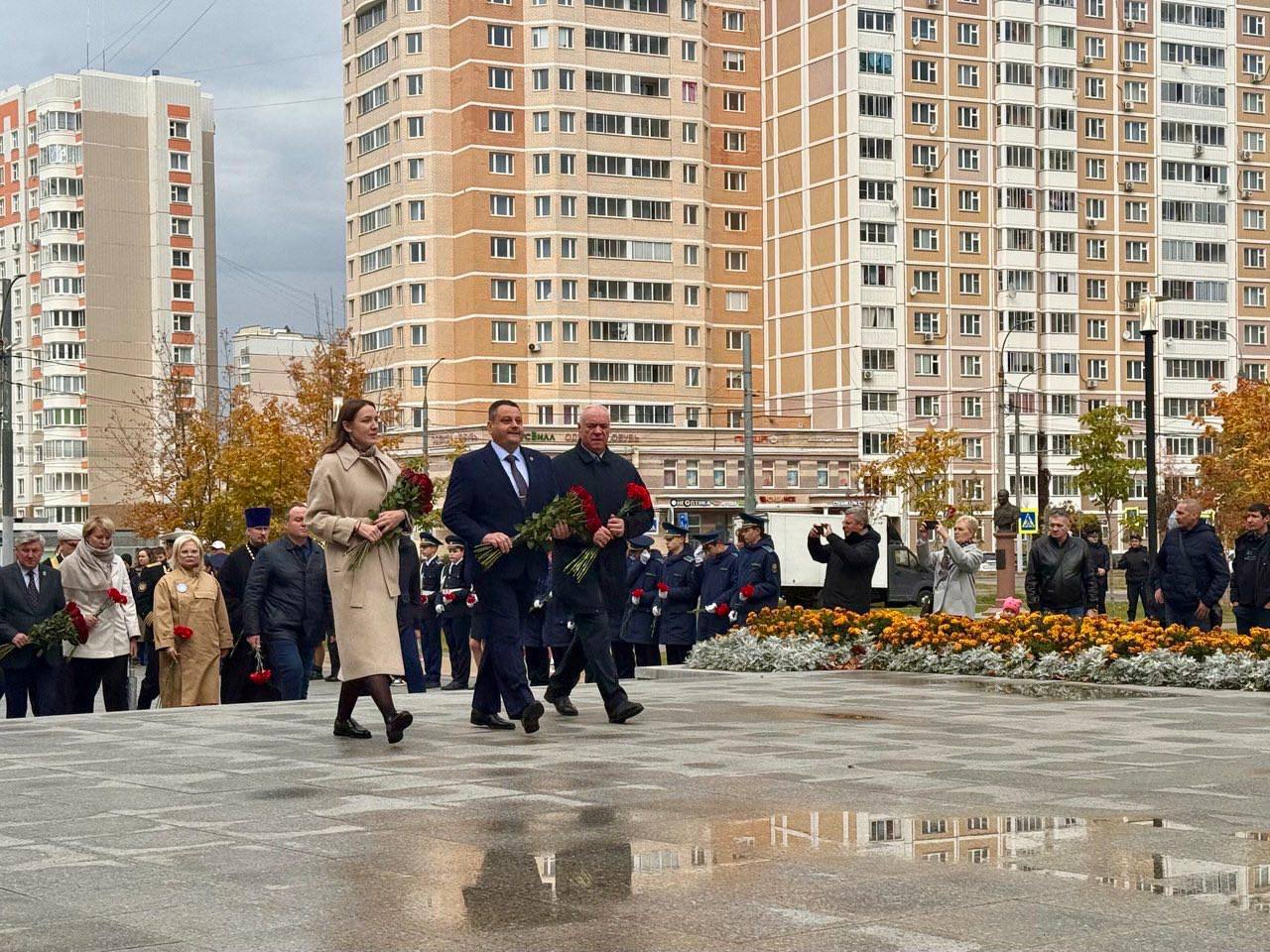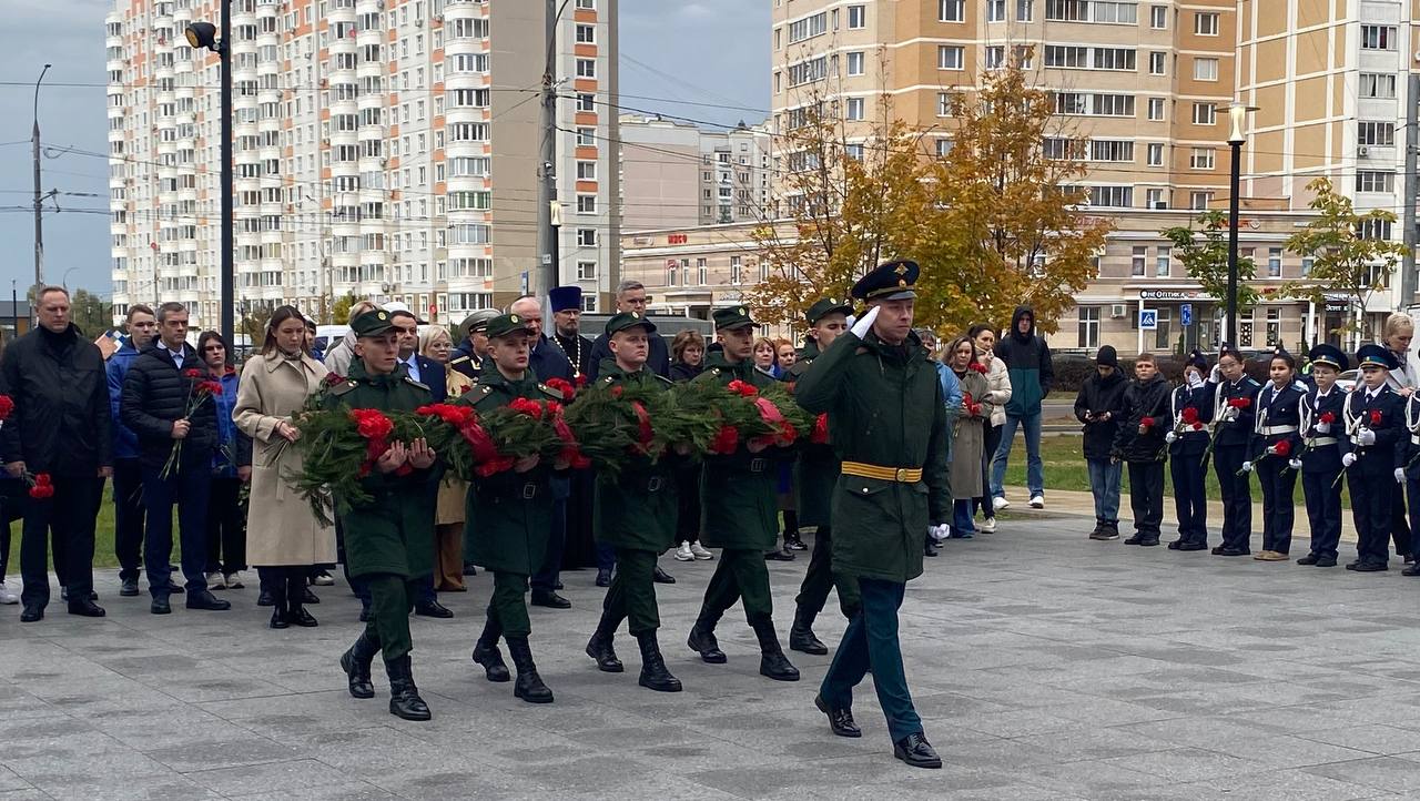 В День памяти Подольских курсантов в микрорайоне Кузнечики на бульваре 65-летия Победы состоялось торжественное возложение цветов к мемориалу «Населённый пункт воинской доблести»