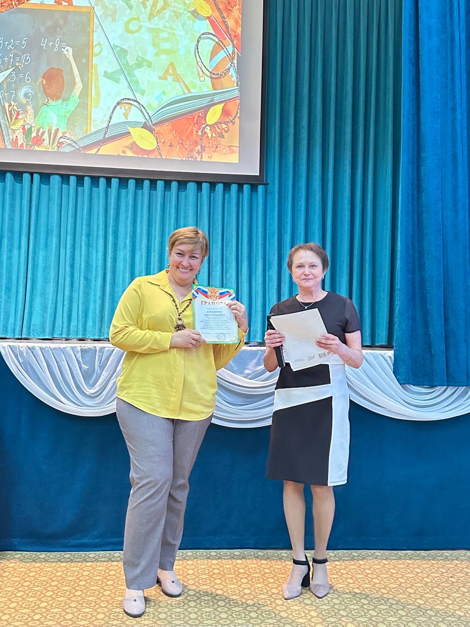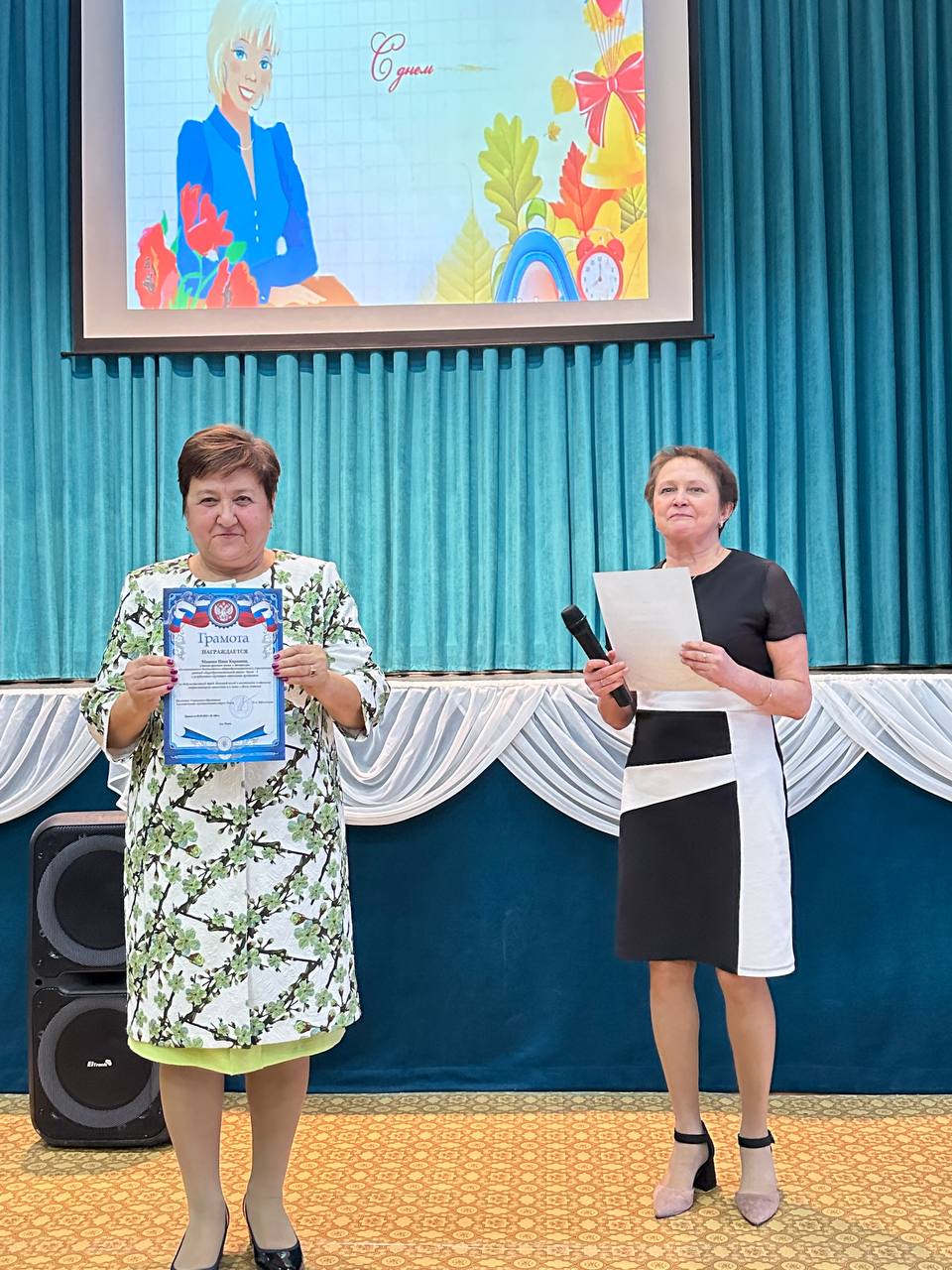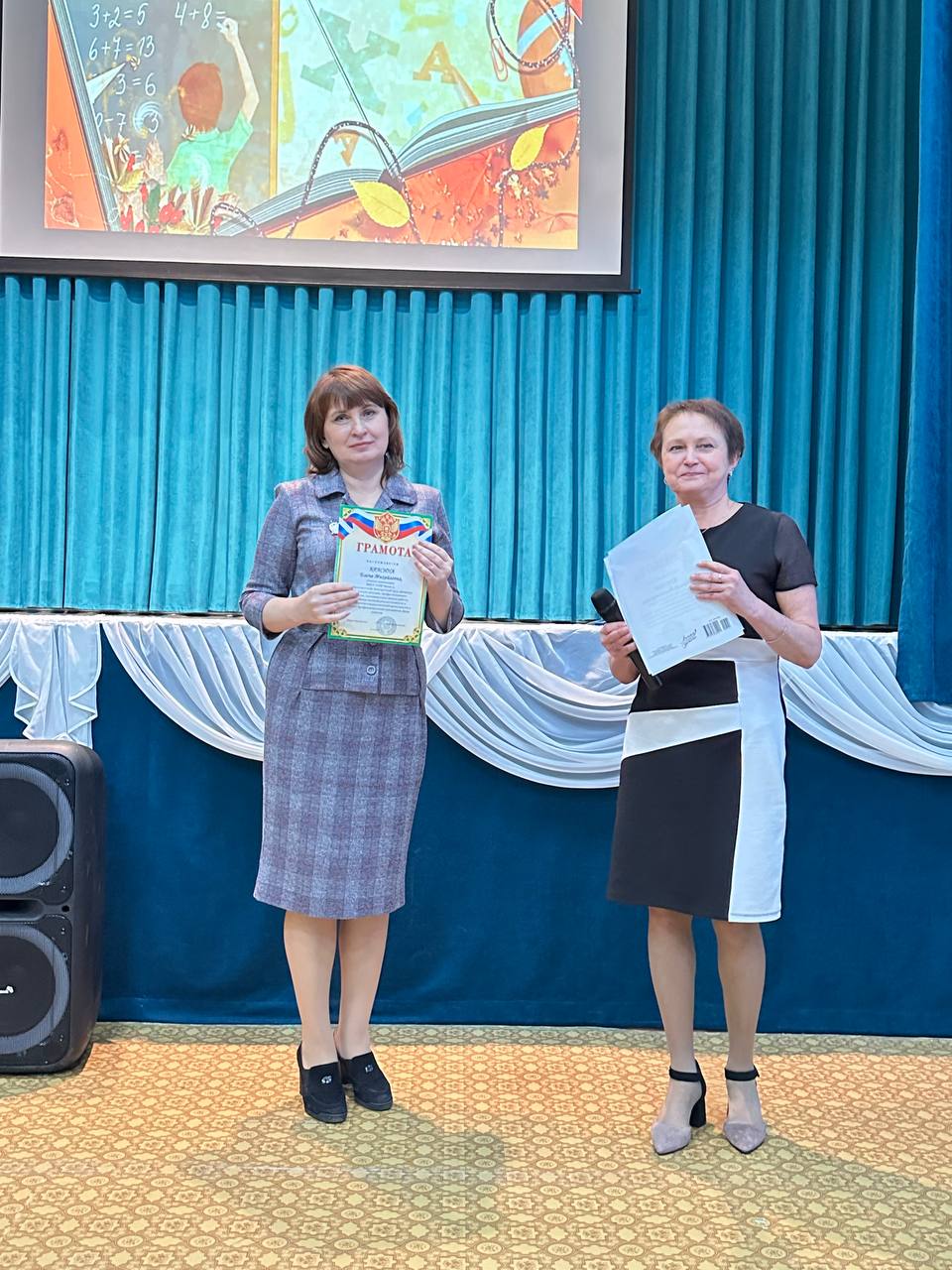 Любовь Вячеславовна обратилась к педагогам с искренними словами благодарности за их неоценимый труд, профессионализм и любовь к своей профессии, пожелала всем учителям крепкого здоровья, вдохновения и новых успехов, подчеркнув важность их роли в воспитании новых поколений и вручила грамоты и благодарности учителям и сотрудникам школы.