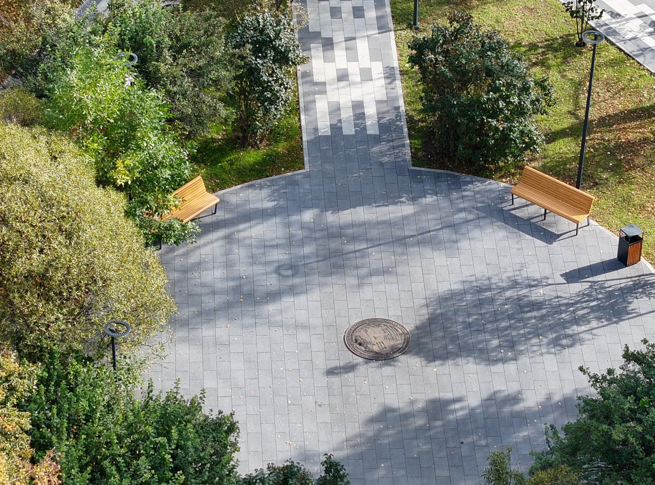 В центральной части общественного пространства появился еще один специальный «космический» памятный элемент – знак «Нулевой километр», который символизирует старт космической эры человечества, начало которой было положено именно в наукограде Королёве.