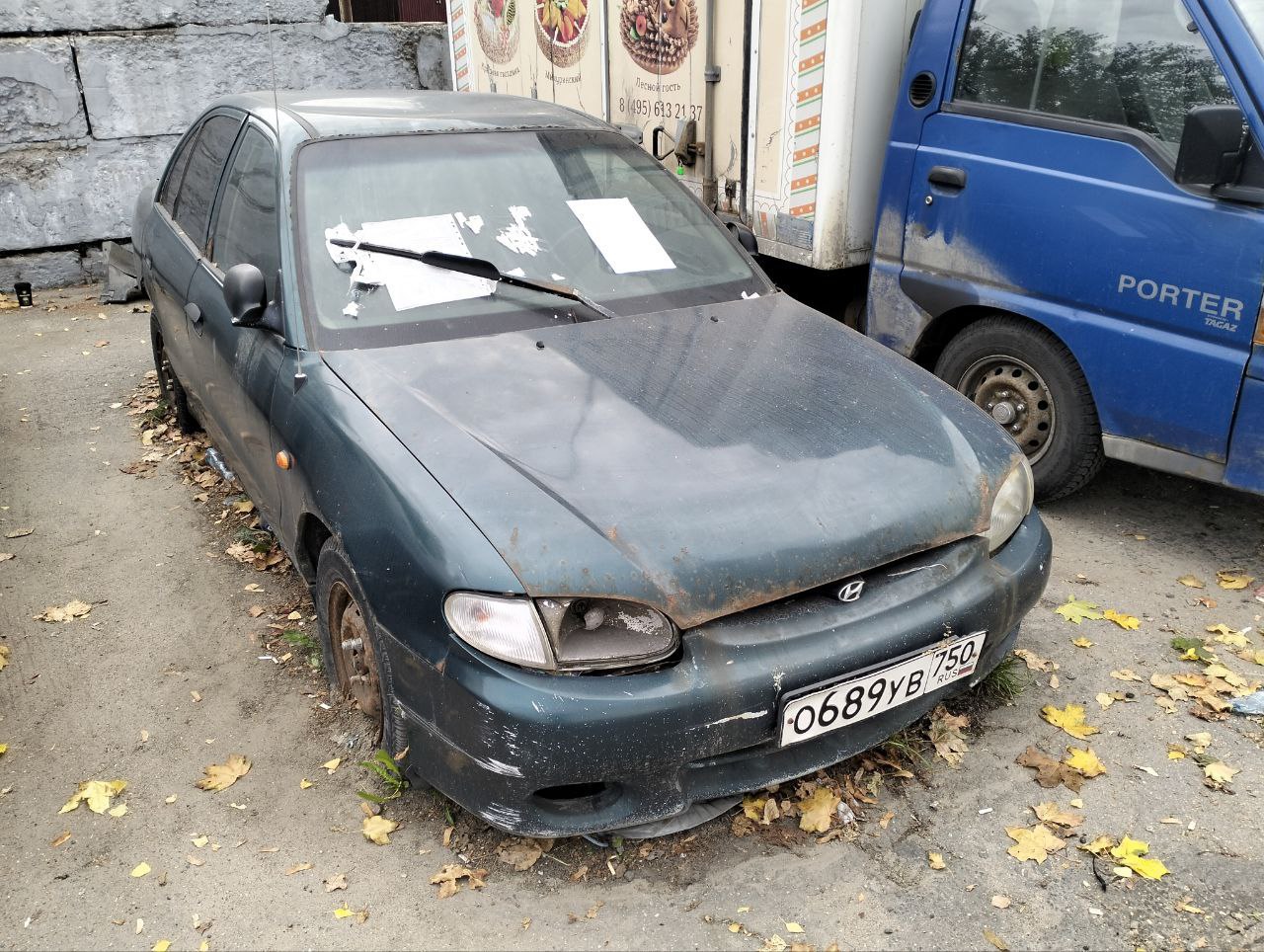 Хендэ сине-зеленого цвета О689УВ750: г. Пушкино, Ярославское шоссе, д. 170Б