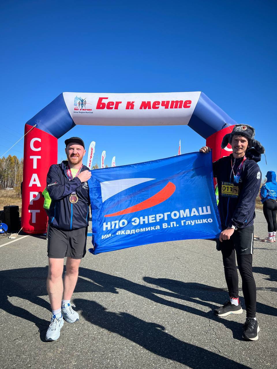 Инженеры НПО «Энергомаш» Алексей Плаксин и Константин Сурнин приняли участие в масштабном легкоатлетическом забеге на космодроме Восточный. Полумарафон «Путь к звёздам» собрал около 300 спортсменов из 18 регионов страны.