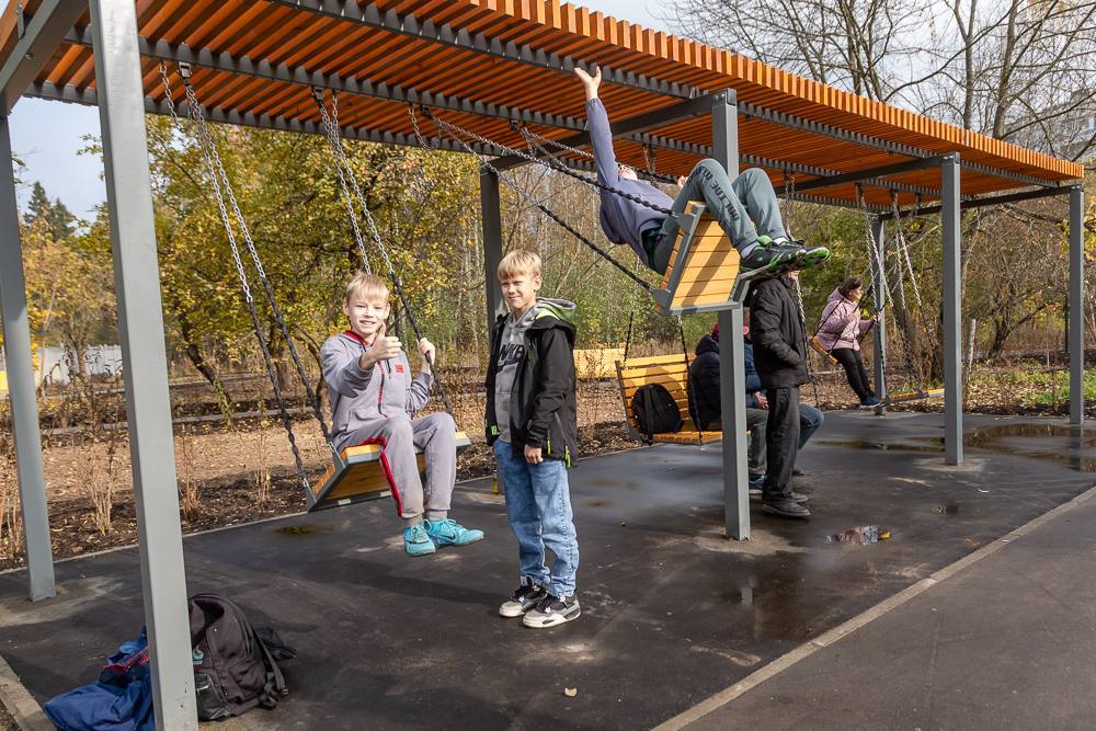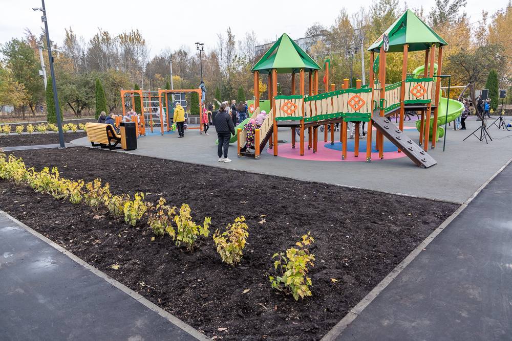 На месте пустыря появились новые дорожки, освещение, скамейки и урны, установлены камеры видеонаблюдения. Для детей сделали игровые зоны на безопасном покрытии, а в тихой части — парковые качели.