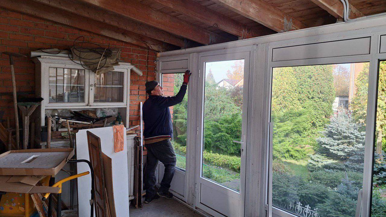 Продолжаем восстановительные работы в домах и на прилегающих территориях на улице Федотовской. Сегодня рабочие ремонтируют ограждение и устанавливают новые стеклопакеты.