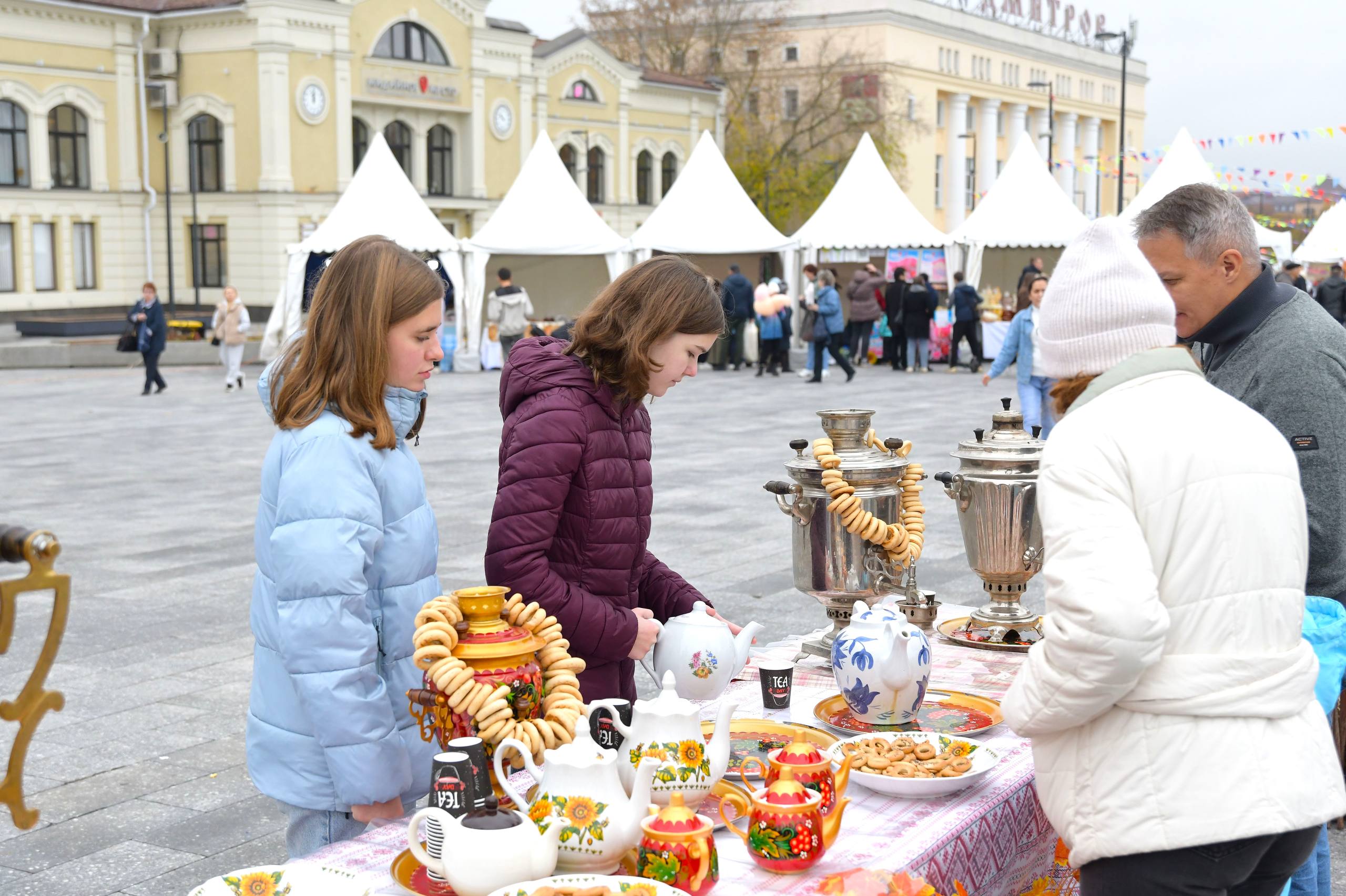 Бесплатный чай из самовара со сладкими угощениями