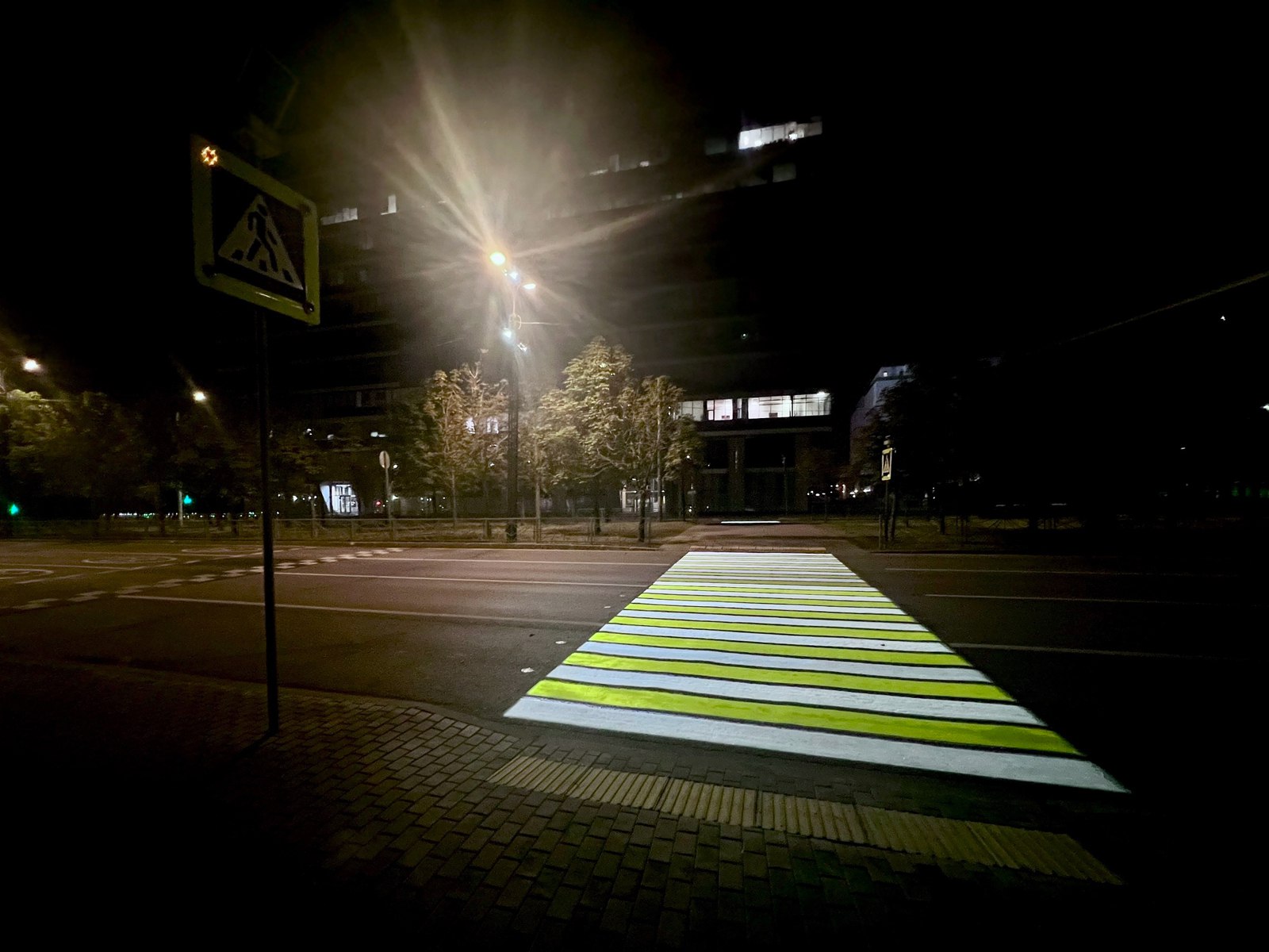 Нововведение появилось возле автовокзала, у гаражного кооператива и рядом с техникумом имени Туманова. Система работает следующим образом: проектор, установленный на П-образной опоре над дорогой, проецирует на асфальт изображение бело-желтой «зебры». Световой поток делает переход видимым для водителей на расстоянии до 150 м, даже если основная разметка стерлась или скрыта под снегом.