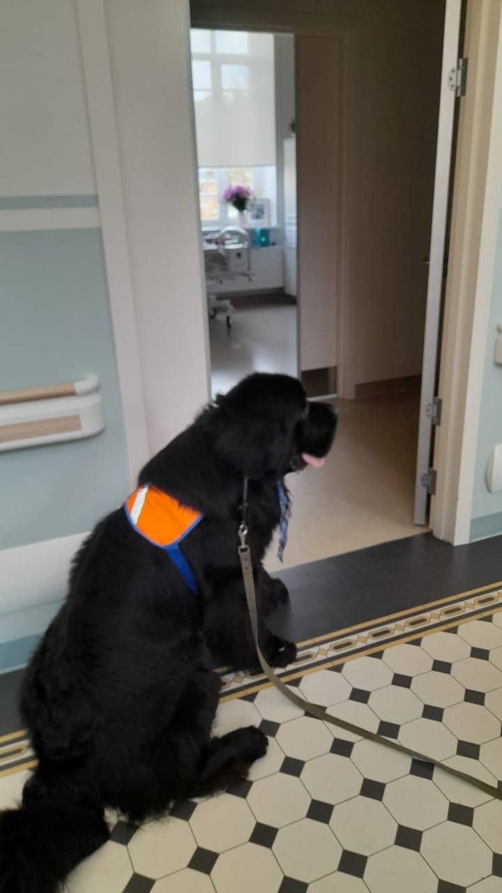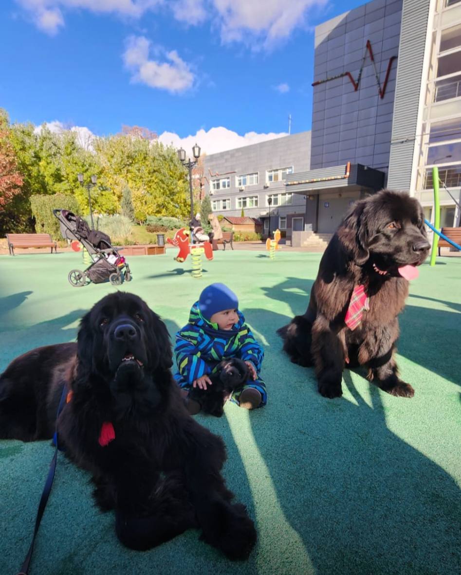 Собакотерапией, а по-научному – канистерапией, ньюфаундленд занимается практически с рождения, то есть уже 3 года. Своё собачье дело он знает на «отлично» – как правильно, не навредив, подарить радость болеющим малышам.