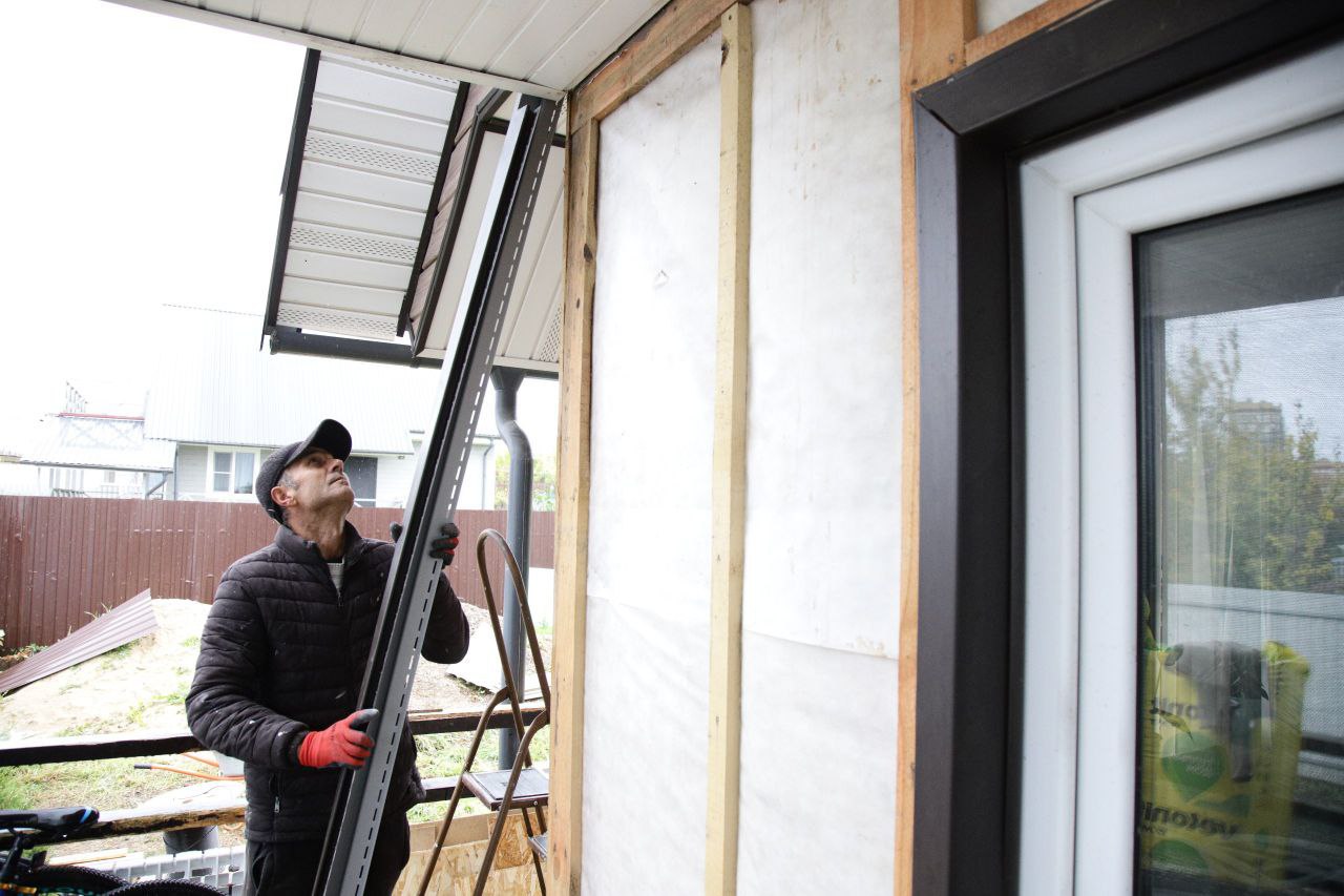Сегодня восстановительные работы продолжаем в поврежденном доме на улице Куйбышева, где рабочие завершают отделку фасада сайдингом.