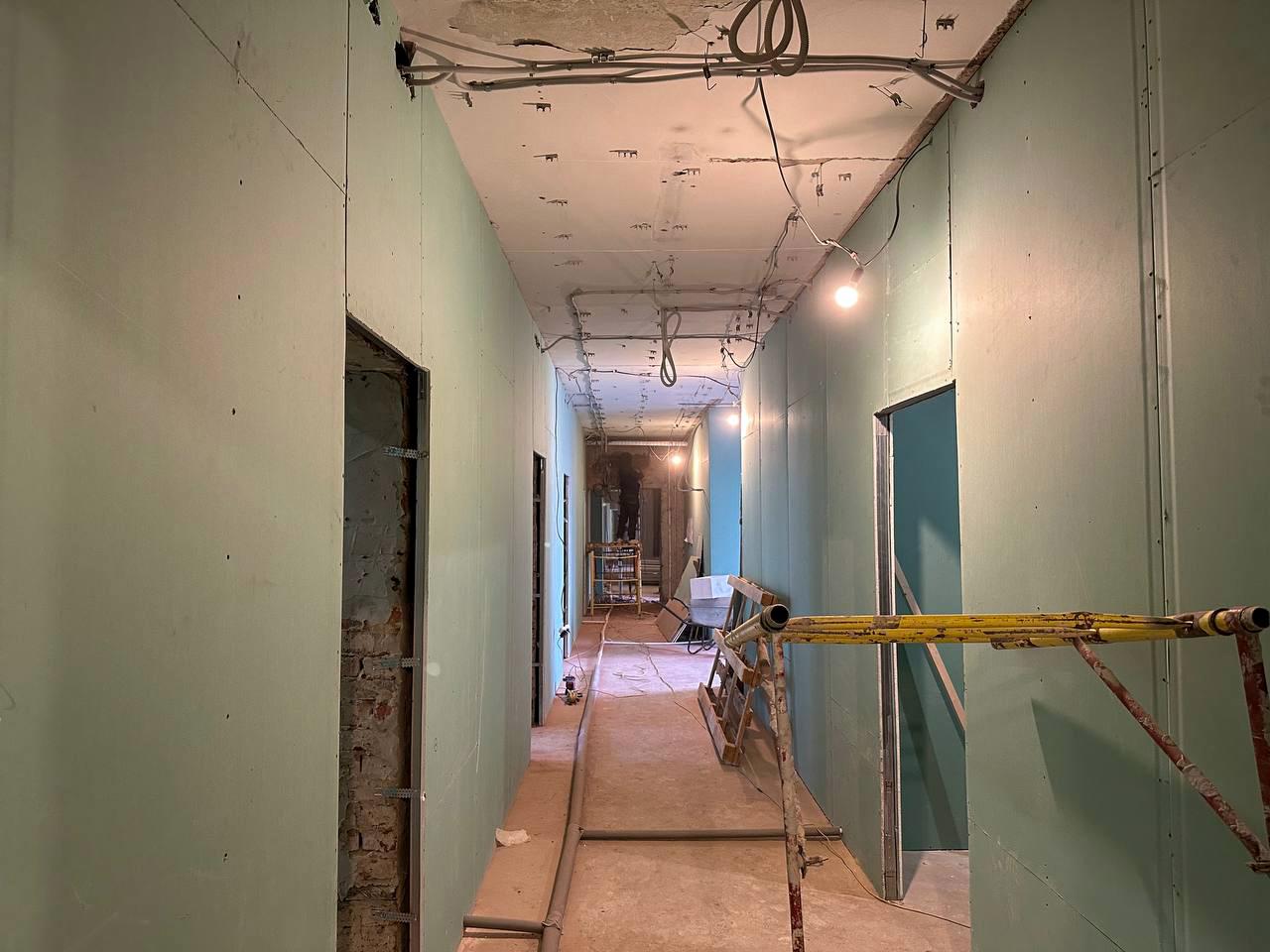 Уже завершены демонтажные работы, подрядная организация приступила к обновлению систем канализации и отопления, а также укреплению полов.