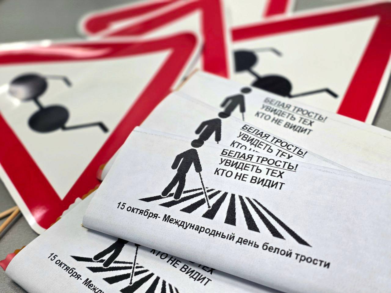 Всем участникам акции, приуроченной к Международному дню белой трости, вручались информационные материалы и сувениры, напоминающие о важности быть внимательным и отзывчивым на дорогах.